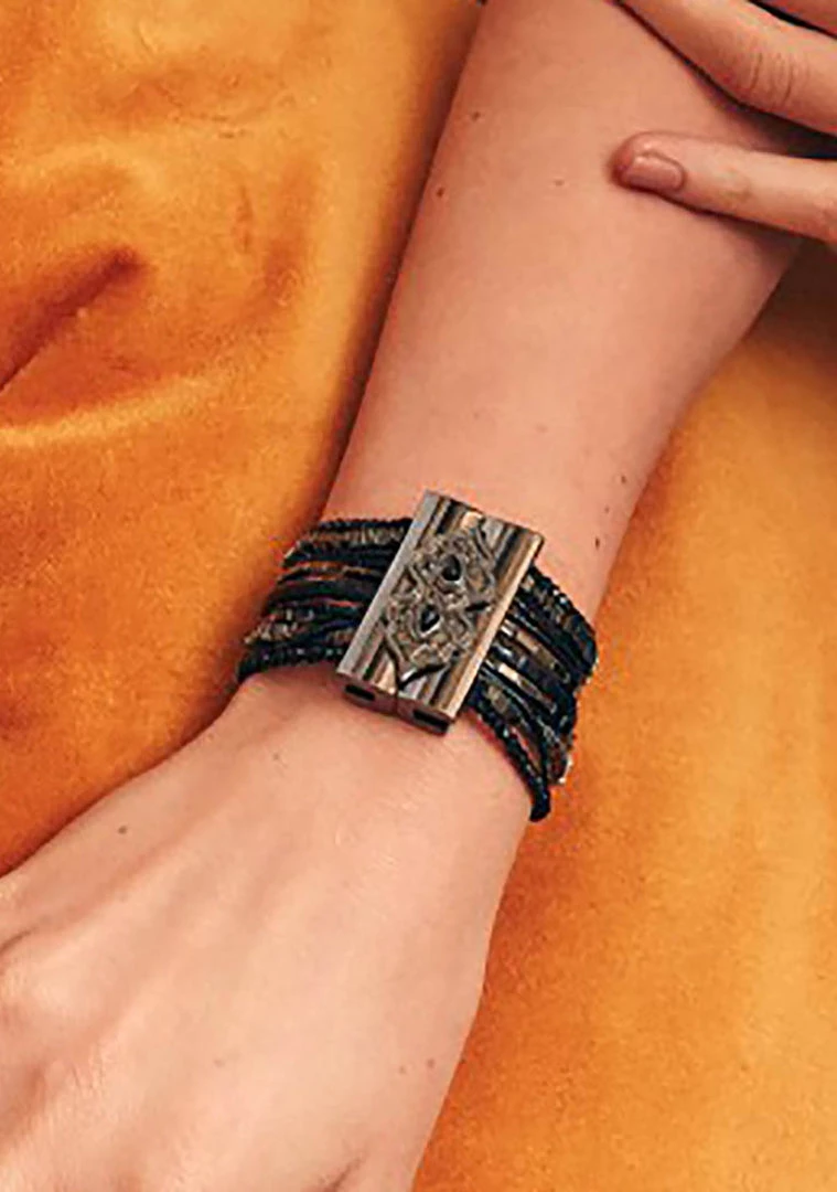 Add a touch of bohemian chic to your outfit with the Santa Fe bracelet from Hipanema. This cute festival bracelets is handmade with multiple styles of bead and stone links and each link is connected to a zinc alloy magnetic clasp engraved with the signature Hipanema logo. This carefully crafted piece of jewelry is a must have for your fall wardrobe!