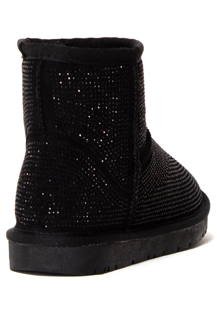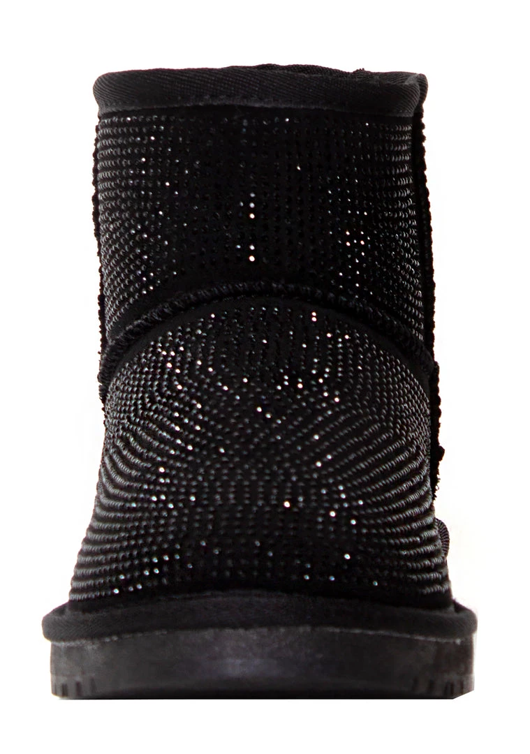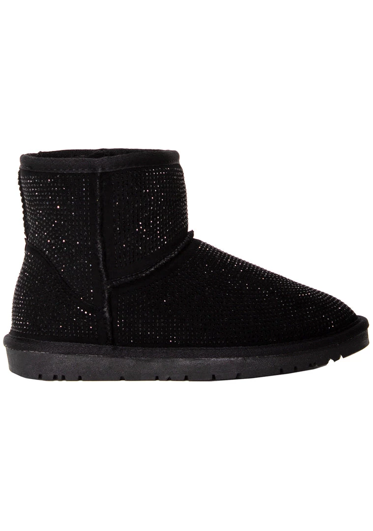 Chill out in style with the new Iced Onyx Rhinestone Faux Fur Boots from Azalea Wang. These cute and comfy festival boots feature a vegan suede outer encrusted in black rhinestones on vegan suede leather upper with easy slip-on faux fur inner lining. #chillout