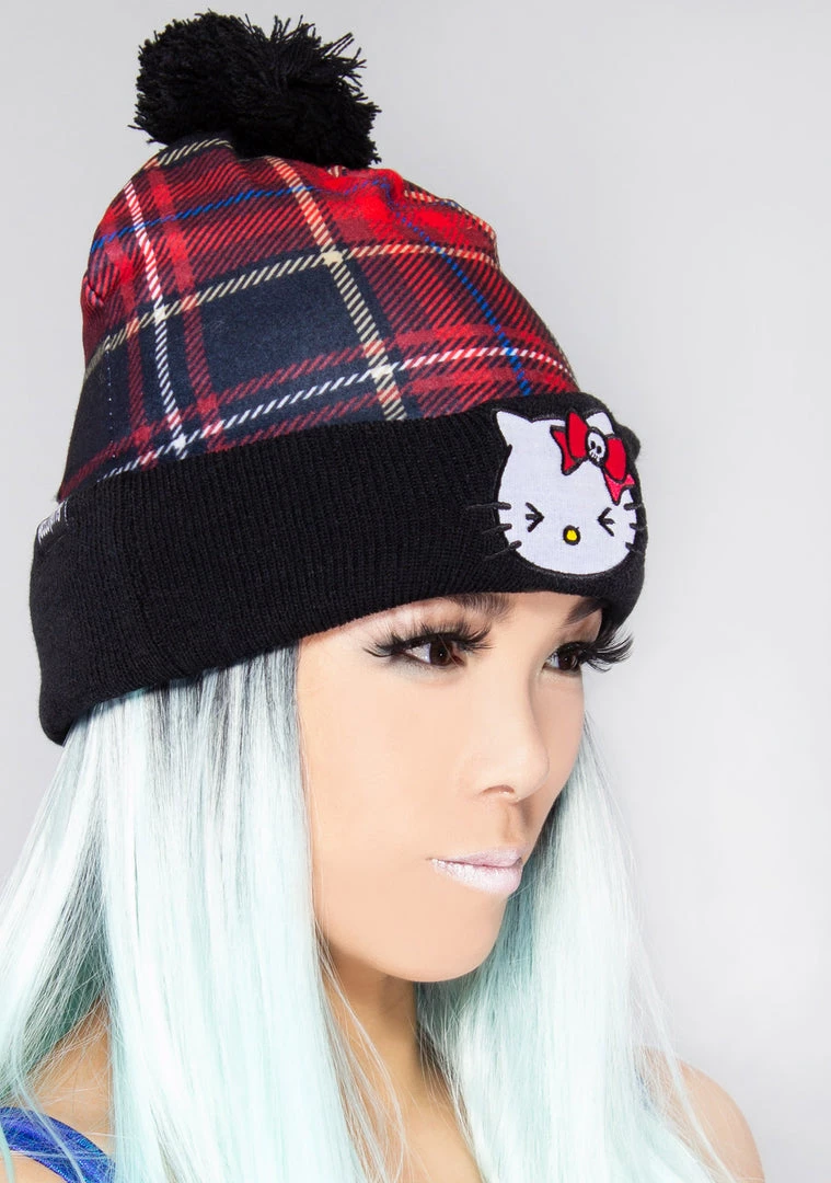 Rock on with the Hello Kitty Plaid Punk Pom Beanie from Bioworld. This kick a$$ festival hat features a plaid knit pom-pom topped beanie with embroidered details. #rebelrebel