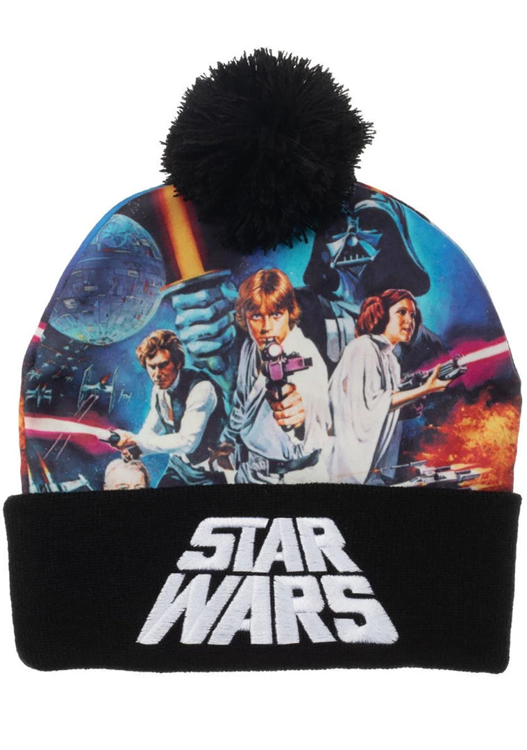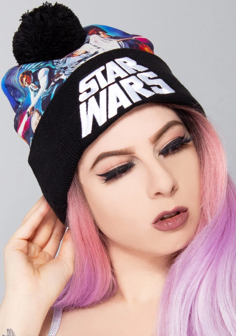 Fight the powers of the Dark Side with the Star Wars Classic Pom Beanie from Bioworld. This heroic festival hat features a pom-pom topped knit beanie with printed and embroidered details. #usetheforce