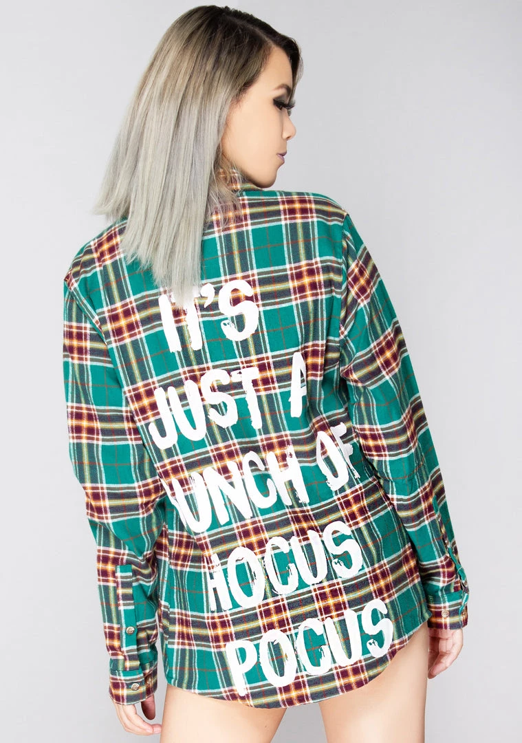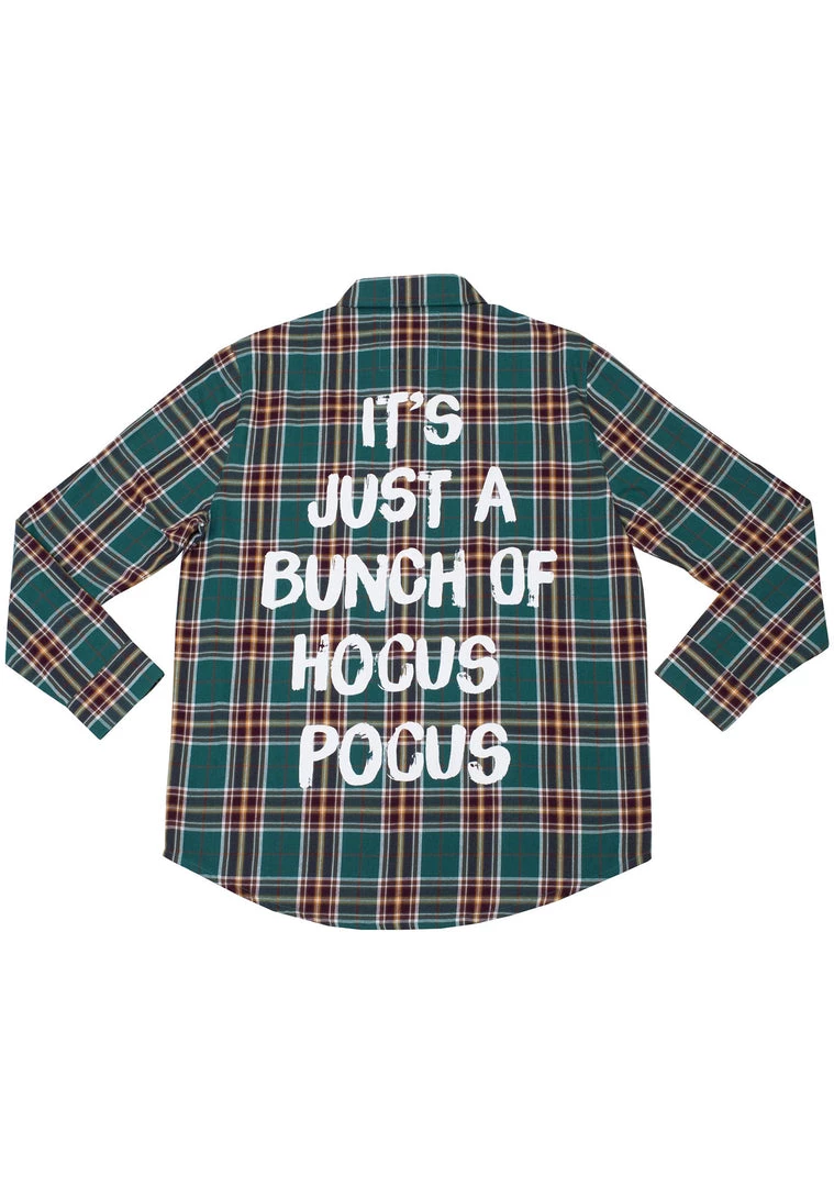 If you don’t believe you’d better get superstitious because the Disney Hocus Pocus Winnifred Flannel from Cakeworthy is here to put a spell on you. This bewitching festival top features a soft long sleeve flannel with a back print, button-up front, front pocket, and embroidered details. Of all the witches working, she’s the worst!