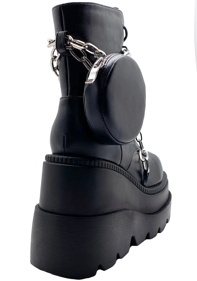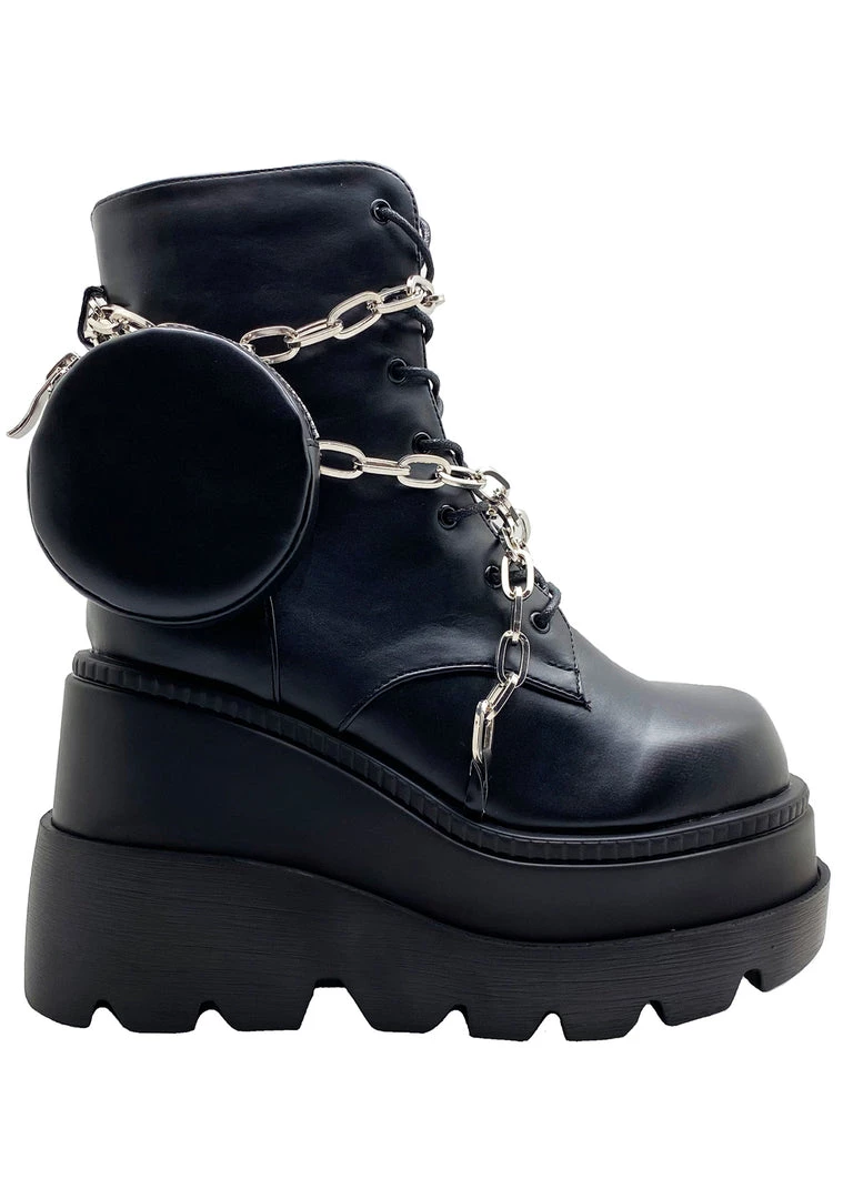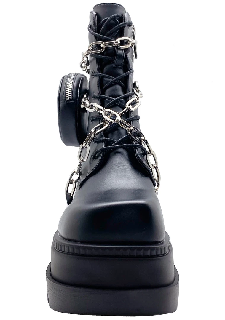 Let them know you have no fear with the Dare Me Platform Boots from Cape Robbin. These totally intense festival boots feature an all-black vegan leather outer with lace-up front, silver-tone chain details, round zipper ankle pouch, and interior zipper closure. #truthordare