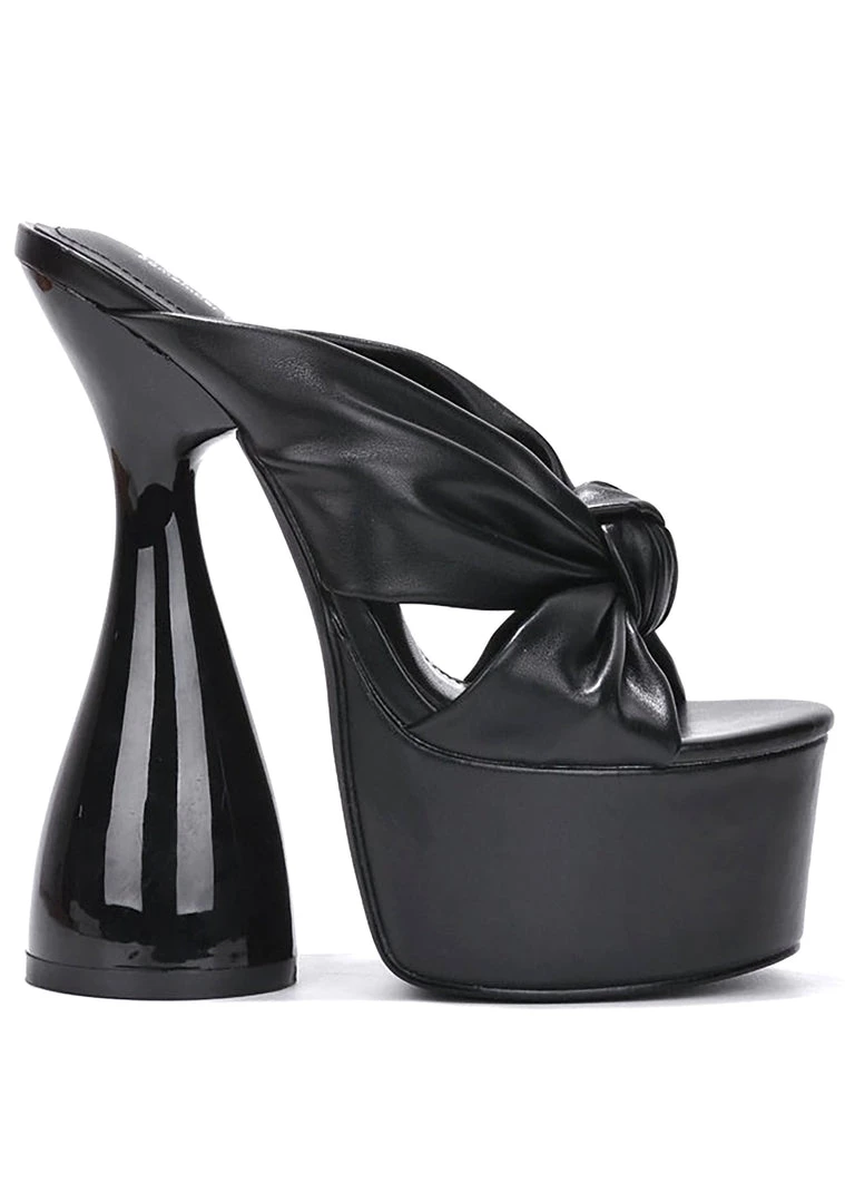 Be as extra as you can be with the Drama Queen Platform Heels from Cape Robbin. These fabulous platform shoes for women feature a black vegan leather slip-on strap upper with knotted detail and a black platform with round bold heels. Slip-on these cute heels and steal all the attention.