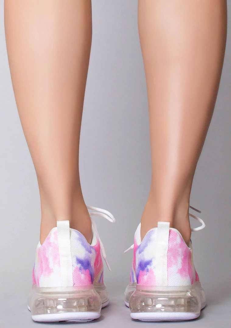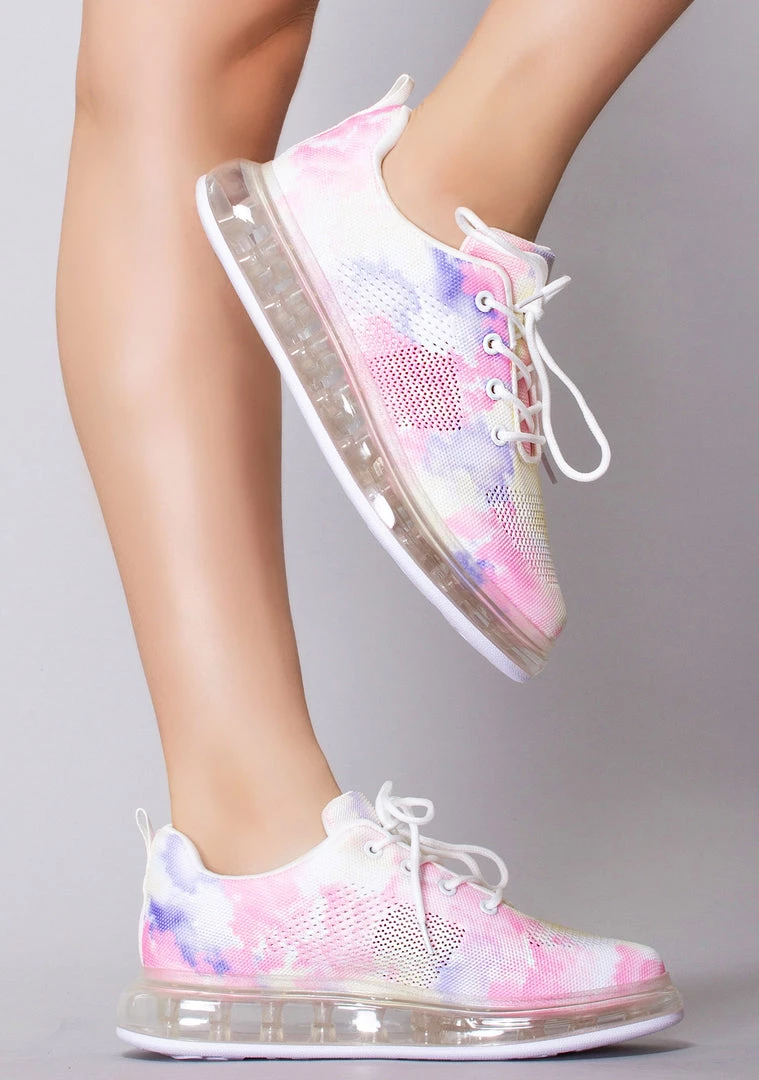 Mmmmm.. Feels like stepping on a cloud when wearing the Qozmiq Cloud Aiire Sneakers from Cape Robbin. These dreamy pastel festival sneakers feature burst pastel tie-dye printed on perforated fabric upper with lace-up closure and clear floaty air outsole. A real dream come true.Â