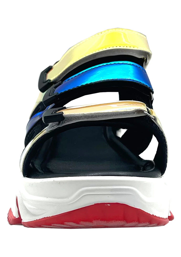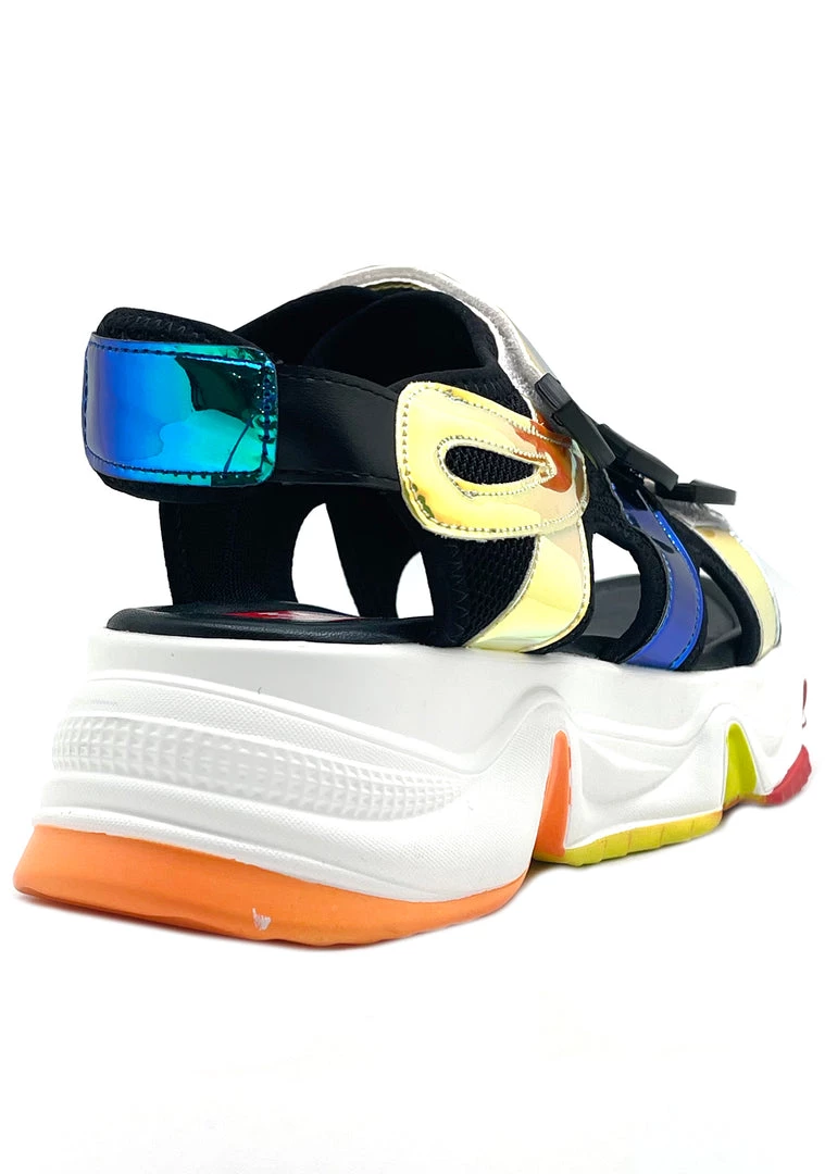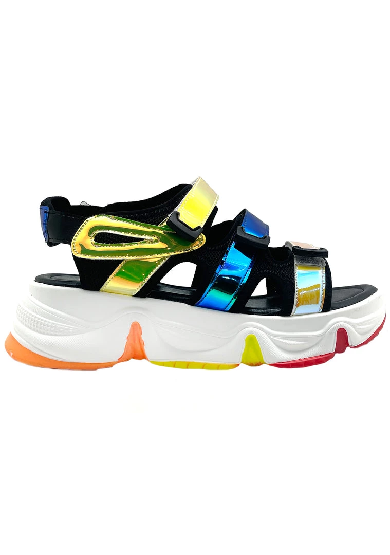 Get ready for Round 1 with the Plugged In Platform Sandals from Cape Robbin. These ultra-cool platform sandals feature multi-strapped black nylon upper with holographic contrast details, vegan leather trim, a velcro strap closure, and a major traction sole. With these cute sandals, your moves will definitely level up!