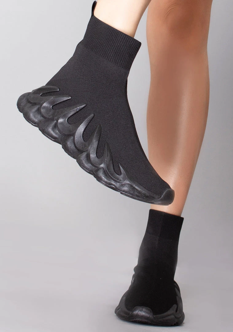 Finish off your futuristic look with the Disfunktion Tech Sneakers from Cape Robbin. These intense rave sneakers feature a black soft sock style upper and matching black chunky tread sole. With these cute sneakers, you’ll be ahead of your time!