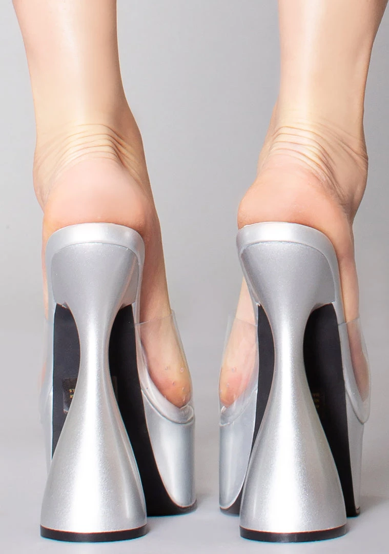 You’ll be looking your absolute best with the Flawless Platform Heels from Cape Robbin. These super sexy platform shoes for women feature a clear PVC slip-on strap upper and silver platform with a round bold heel. #flawless
