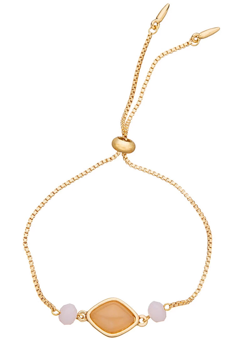 - Heart Rose Quartz & Gold Adjustable Stone and Bead Bracelet