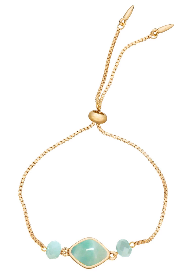 - Peace Amazonite & Gold Adjustable Stone and Bead Bracelet