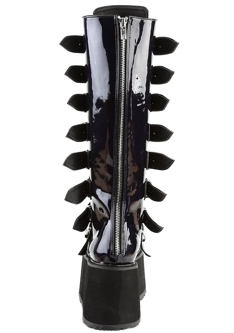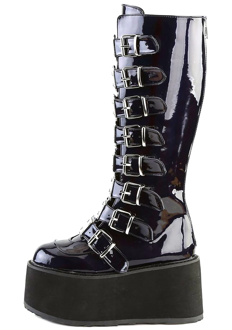 Party in your own world with the new Delusional Dream Platform Boots from Demonia. These unreal mid-calf festival boots feature a holographic black vegan leather upper, buckle up front with silver plate detail, and back zipper closure. Why live in the real world when you can just create your own?