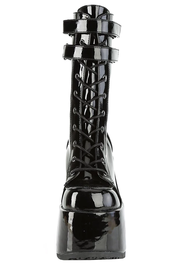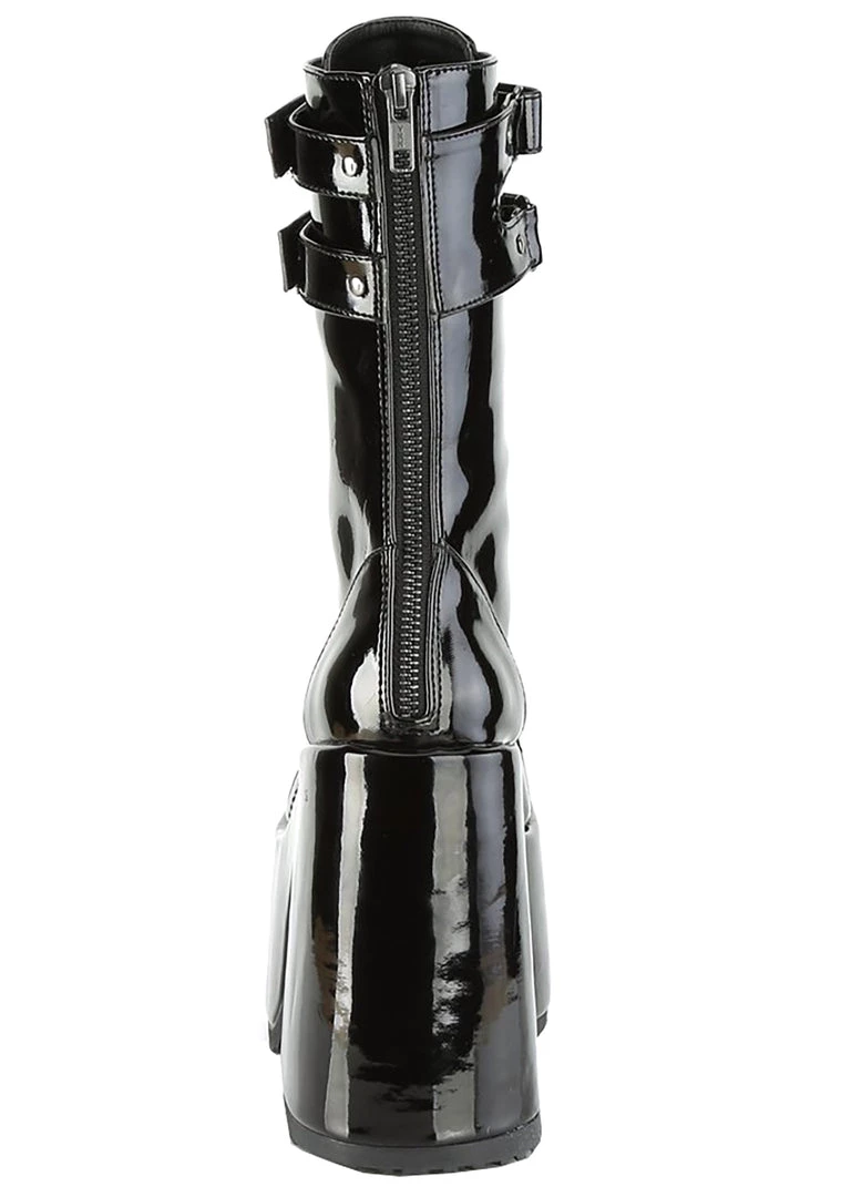 Throw rules and regulations out the window cuz’ the baddies who wear the Demonia Hollywood Hellraiser Platform Boots never play by the book. These bad af platform boots feature a full-on black patent vegan leather upper with super chunky platform heels, lace-up detail, double hook, and loop straps, and metal zipper closures in the back. Wanna join us girls?