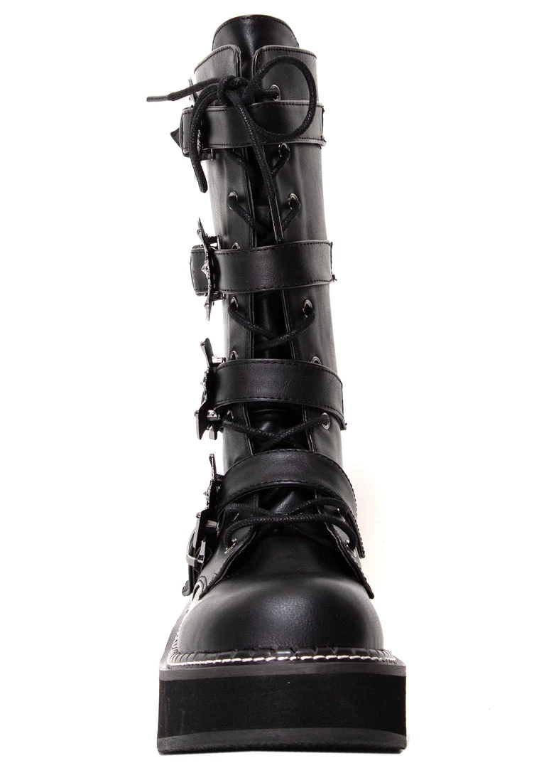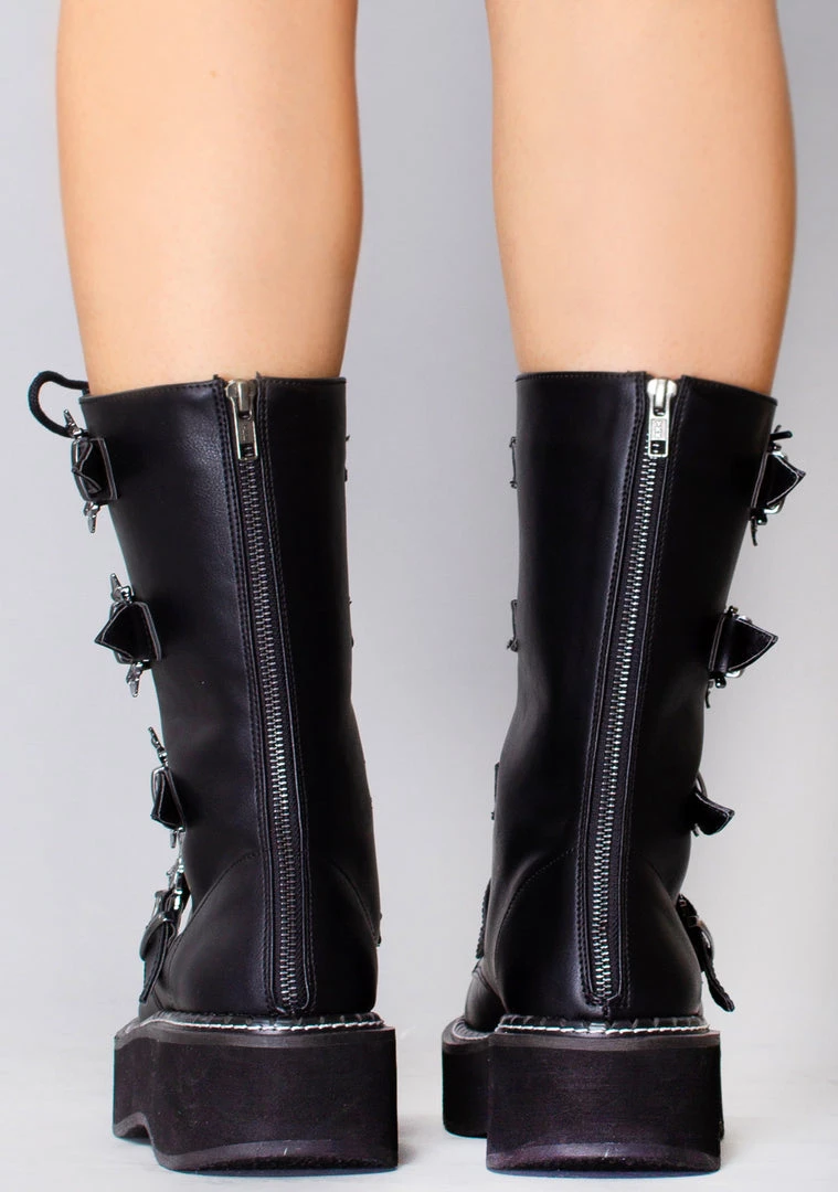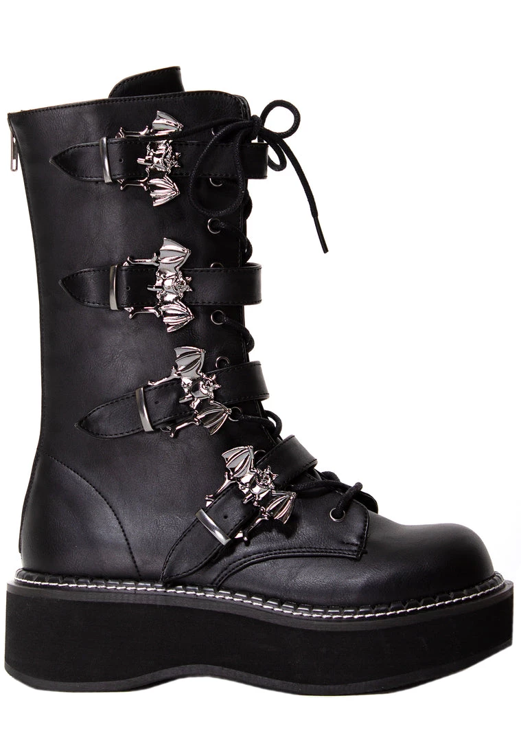 Live the nightlife in the new Shadow Walker Platform Boots from Demonia. These badass festival boots feature a vegan leather upper, lace-up front, straps with bat buckle details, and zipper closure up the back. It’s time to find out what really goes on in the shadows.