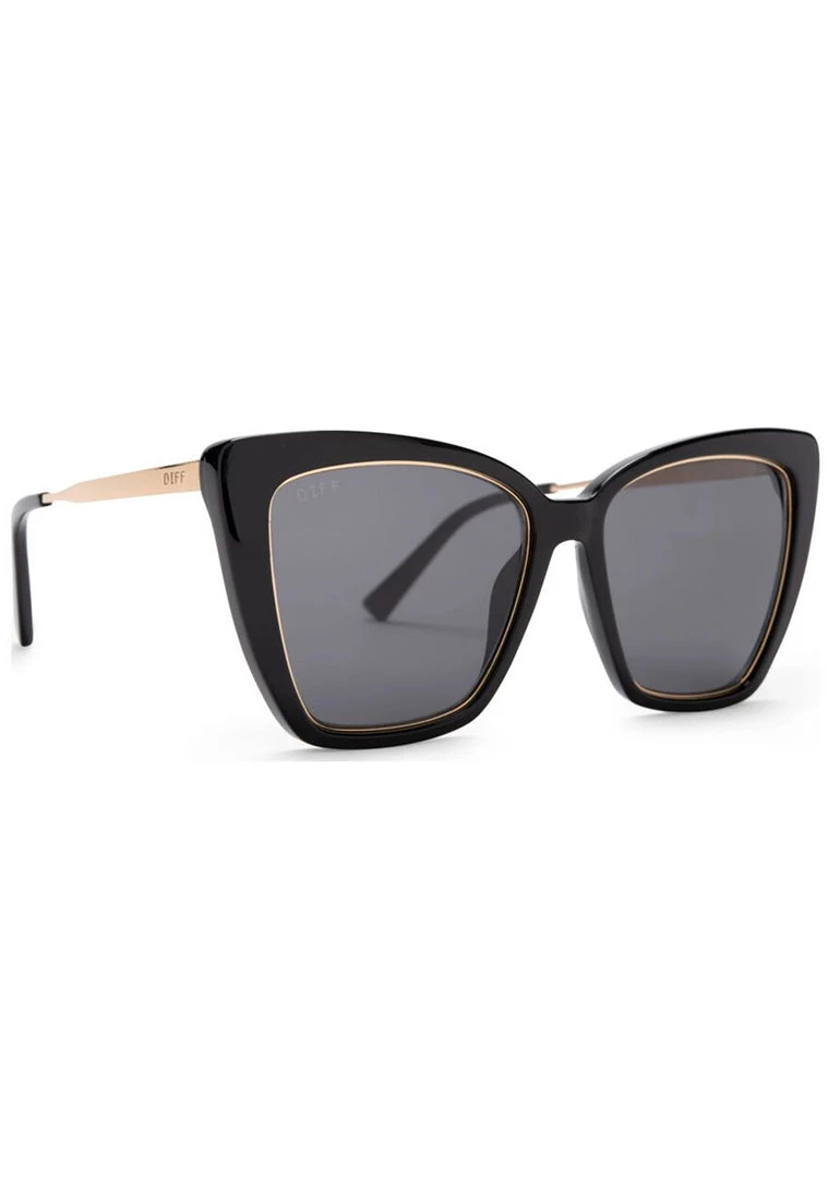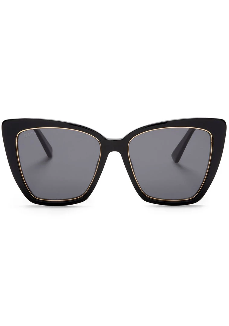 Make ‘em do a double take in these superstar Becky IV Sunglasses from DIFF Eyewear. These super cool festival sunglasses feature an ultra glam oversized black colored hand cut cate-eye shaped acetate frame with inner gold trim accents, gold stems, and high-quality polarized faded smoke lenses. With these sexy festival sunnies, you’ll be simply unforgettable.