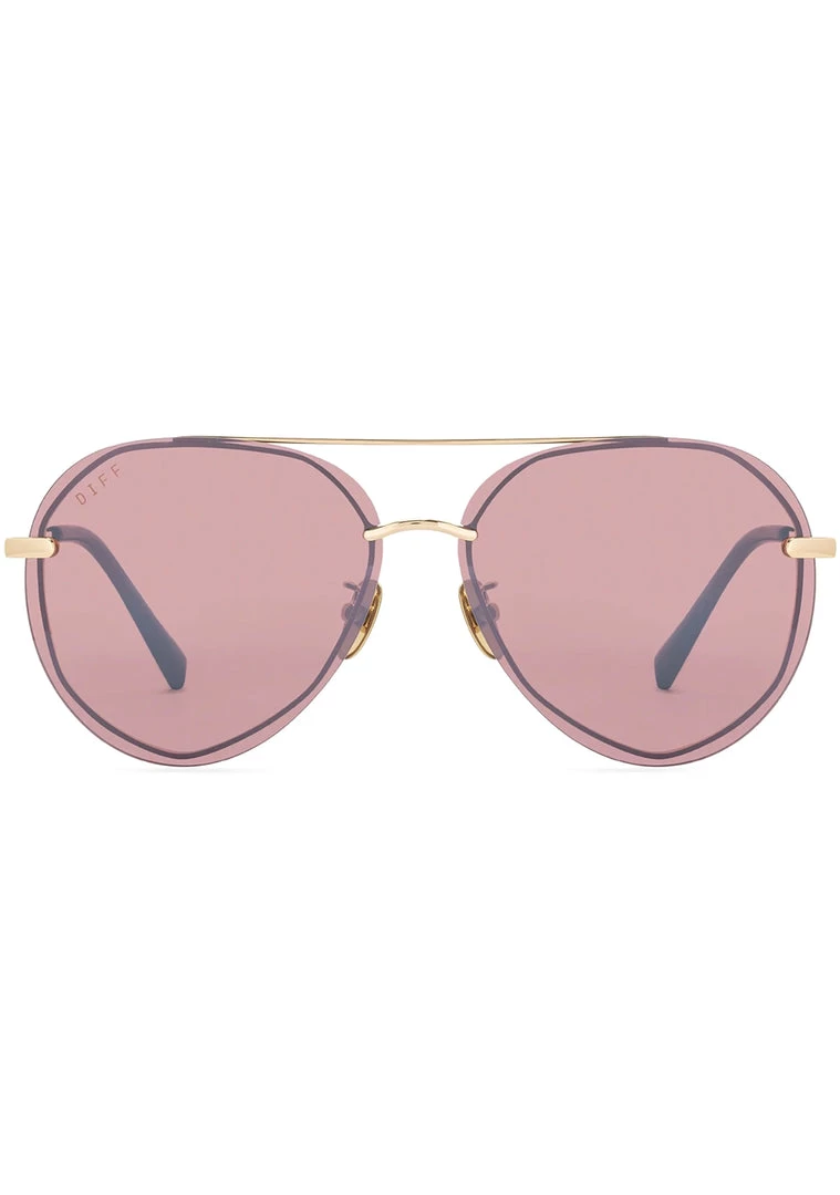 Need something to complete your look? The Lenox Sunglasses from DIFF Eyewear have got it covered. These stylish festival sunglasses feature a gold-tone aviator style frame with round chestnut flash lenses, comfy nose padding, and stainless steel hinge. These cute sunglasses are sure to be your new go-to accessory.