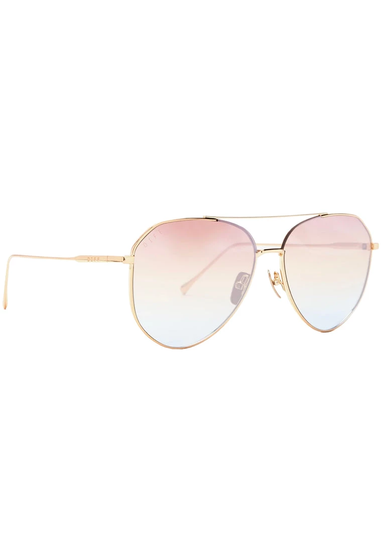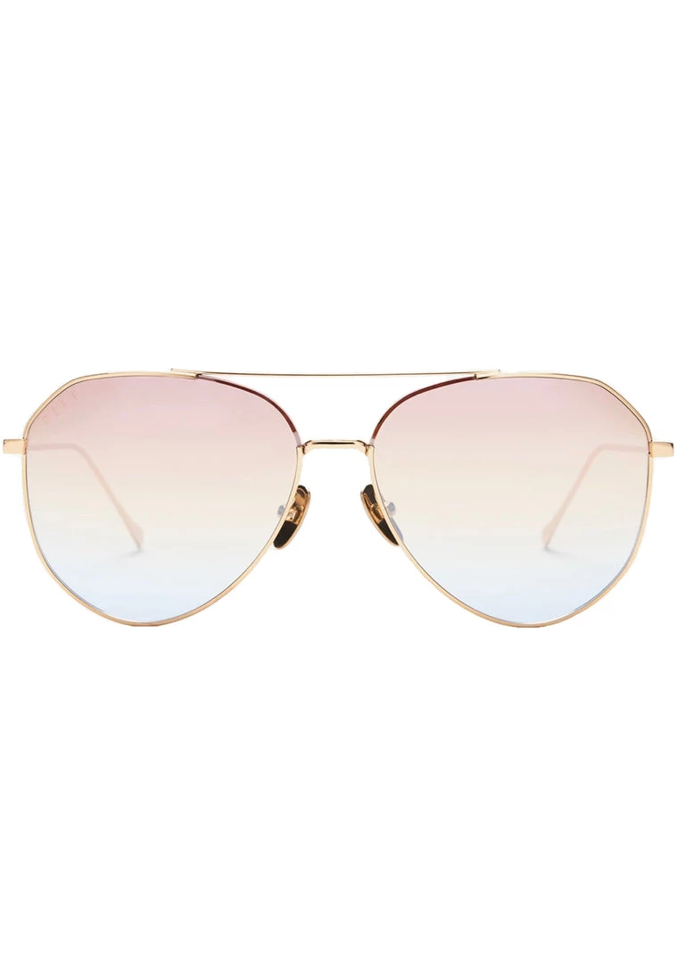 With the Dash Sunglasses from DIFF Eyewear youβll bring out the sun even on the cloudiest days. These totally hot festival sunglasses features a shiny gold metal aviator frame with comfy nose padding, stainless steel hinge, and rainbow flash flat lens. Rain, rain, go away. These cute sunglasses want to come out and play!