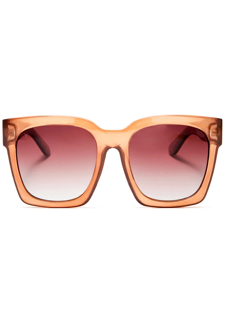 The Anonymous Sunglasses from Dime Optics are the way to make a statement. These classically cool festival rave sunglasses feature an oversized square clear taupe frame, polarized brown fade lenses, dime. brand logo on the stems and X etched right lense. With these cute sunglasses, you’ll be the center of attention!