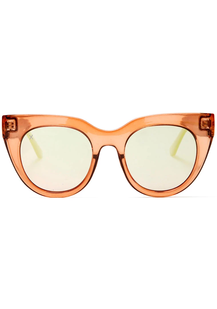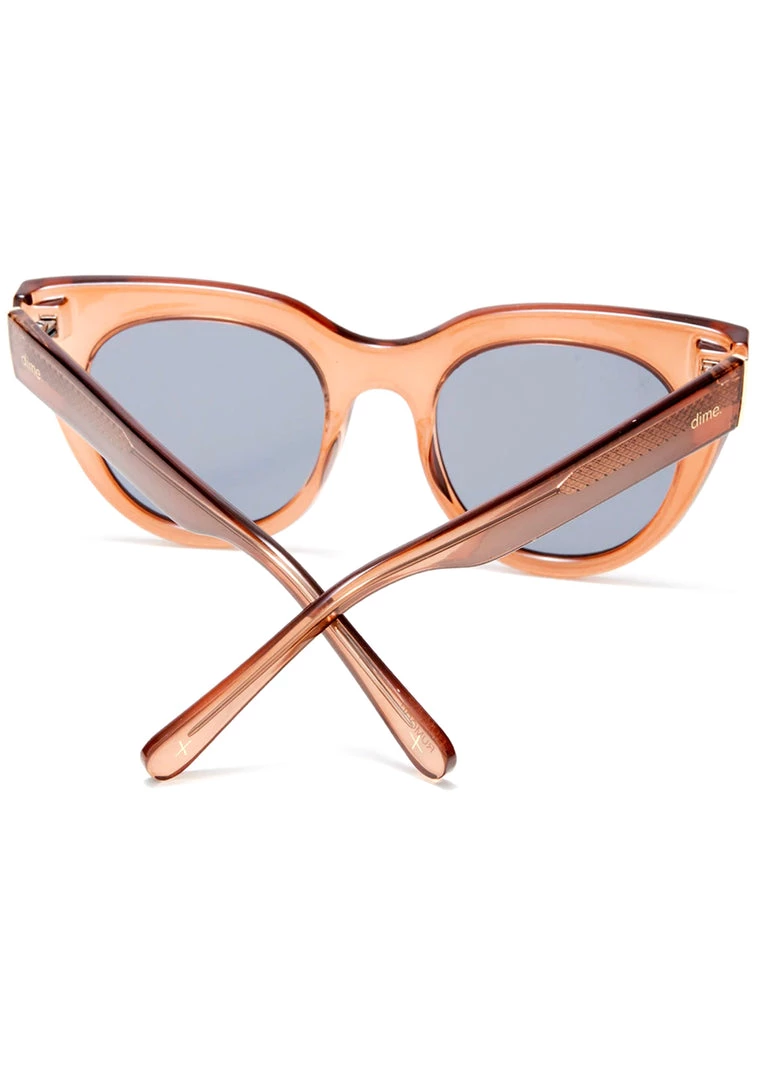 Be the talk of the town with the Rumors Sunglasses from Dime Optics. These ultra-stylish festival rave sunglasses feature a sheer taupe rounded cat-eye frame, polarized beige mirrored lenses, dime. brand logo on the stems and X etched right lens. With these cute sunglasses, you don’t have haters, you have fans in denial!