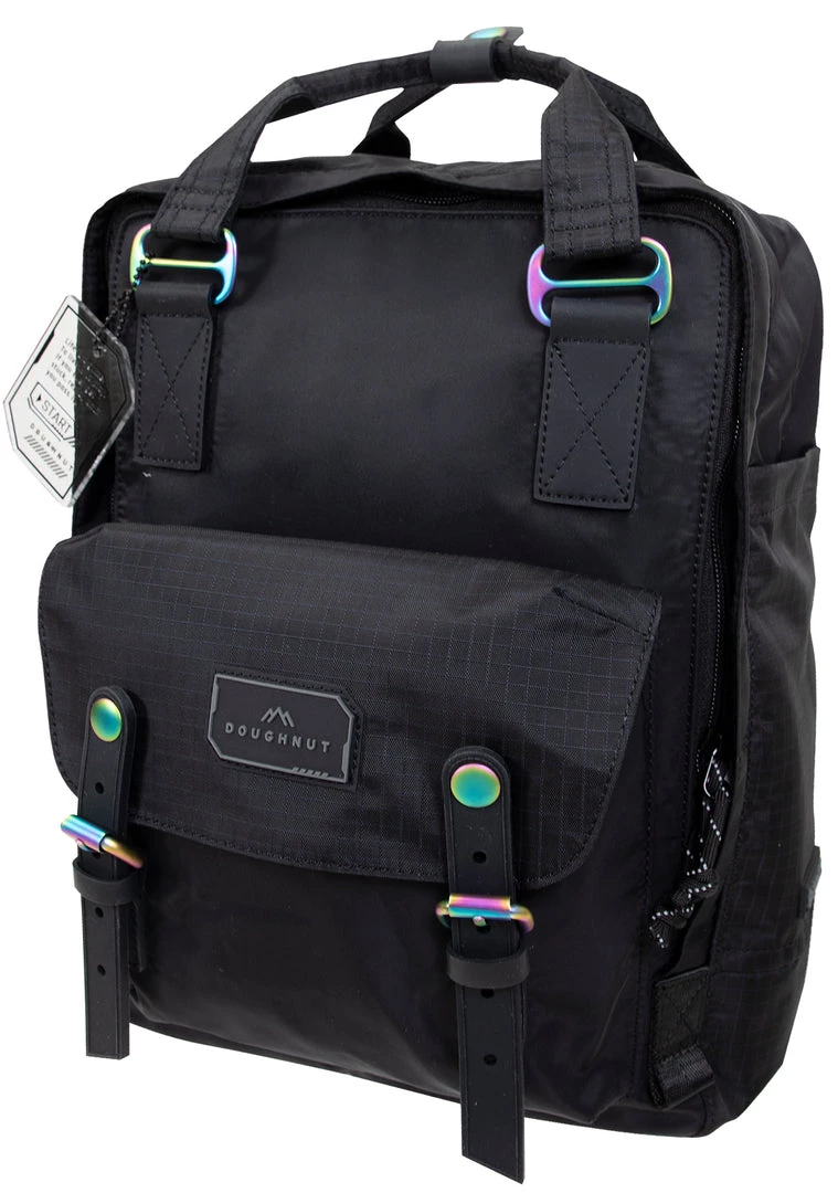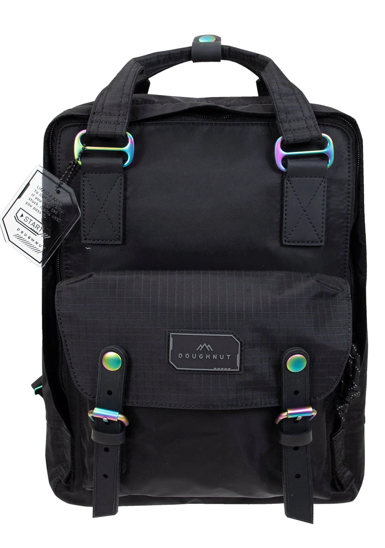 Go on your next raid when wearing the Gamescape Series Macaroon backpack from Doughnut Official. This next-level festival backpack features a black water-resistant exterior with a large zippered main compartment, side pockets, front snap buckle pocket, iridescent hardware, dual padded shoulder straps, top handle, fully lined interior with an inner pocket, and secure zipper closure. Re-group and let’s raid.
