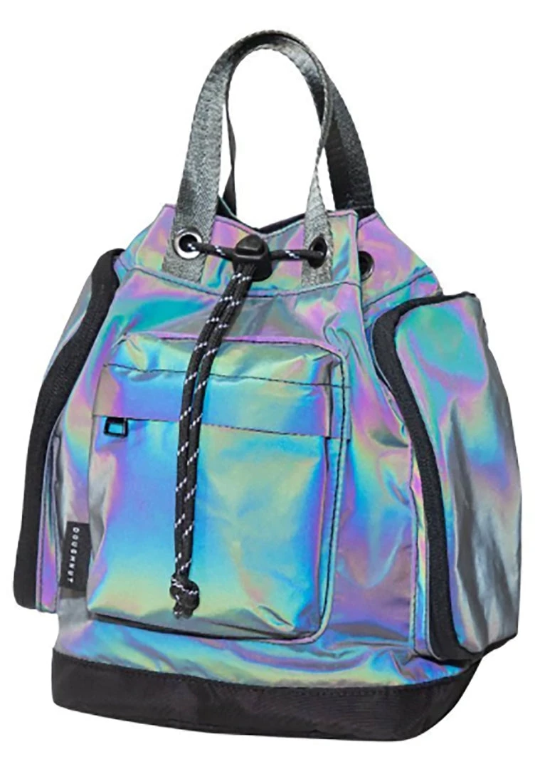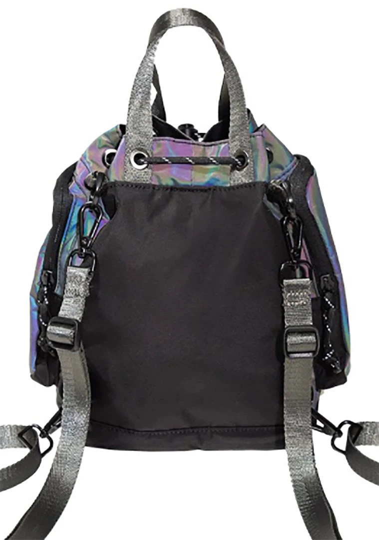 All eyes will be on you while wearing the Limelight Series Pyramid Tiny Convertible Mini Backpack from Doughnut Official. This attention-grabbing festival backpack features a reflective water-resistant exterior with a drawstring main compartment, zippered front pocket, optional adjustable shoulder strap, and top handles. Go on let them stare, they all want to be you or be with you. .:WINK:.