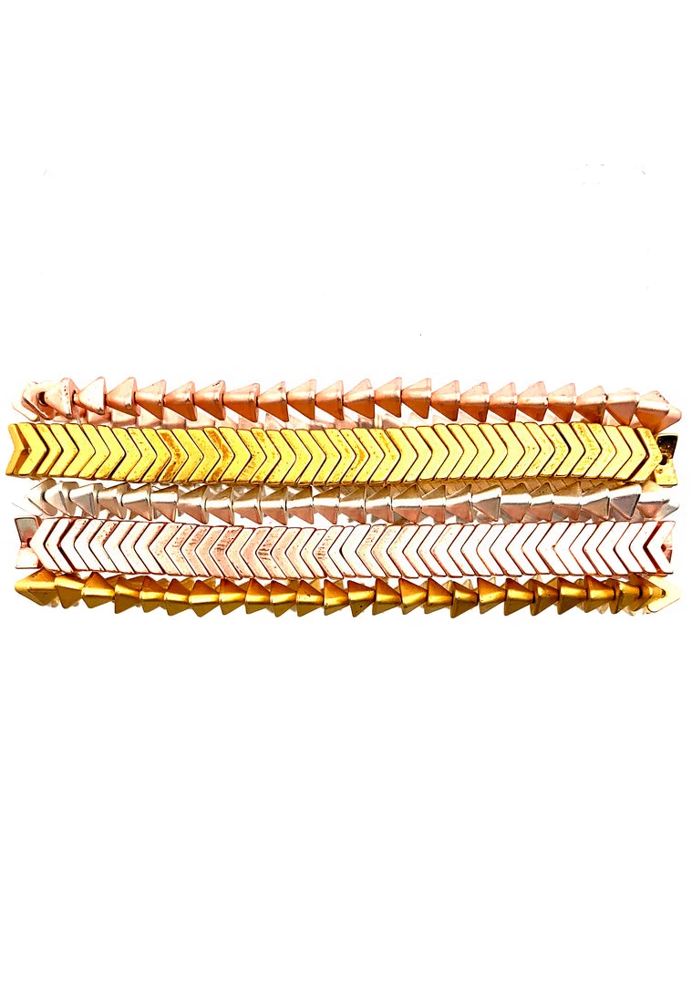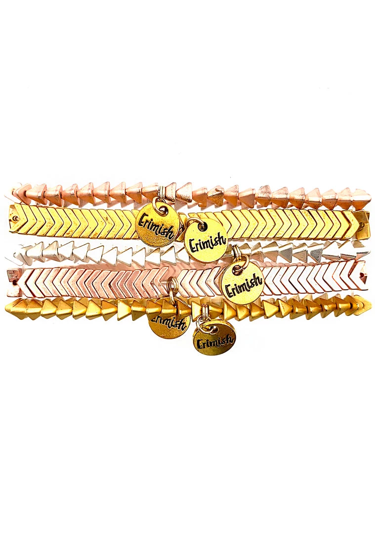 Add a touch of 90s style with this Erimish Ari Stacked Bracelet. Inspired by your favorite pop princess that dominated the era. This rose, silver and yellow gold bracelet stack has stones, shapes and beads made from natural and synthetic materials. Paired with signature Erimish brand charms, this festival stack is perfect to finish any retro look. It’s 1999 all over again!