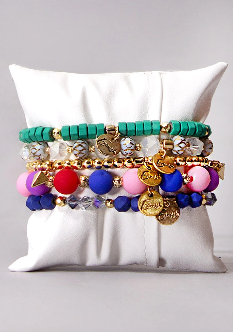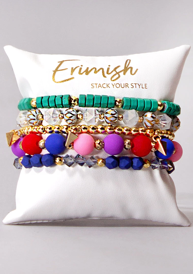 It’s always a good time with the new Mardi Gras Bracelet Stack from Erimish. This fabulous stack features 5 festival bracelets composed of an array of beads in various colors, gold accents, and dangling charms for extra fun. Grab your Mardi Gras beads and party the day away.