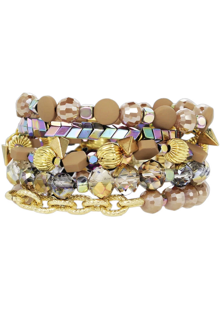 Bring the heat to any outfit with the Solar Flare Bracelet Stack from Erimish. These flashy punk bracelets feature caramel, gold, and fun iridescent colored beads! Nothing can dull your light in this radiant festival bracelet stack.