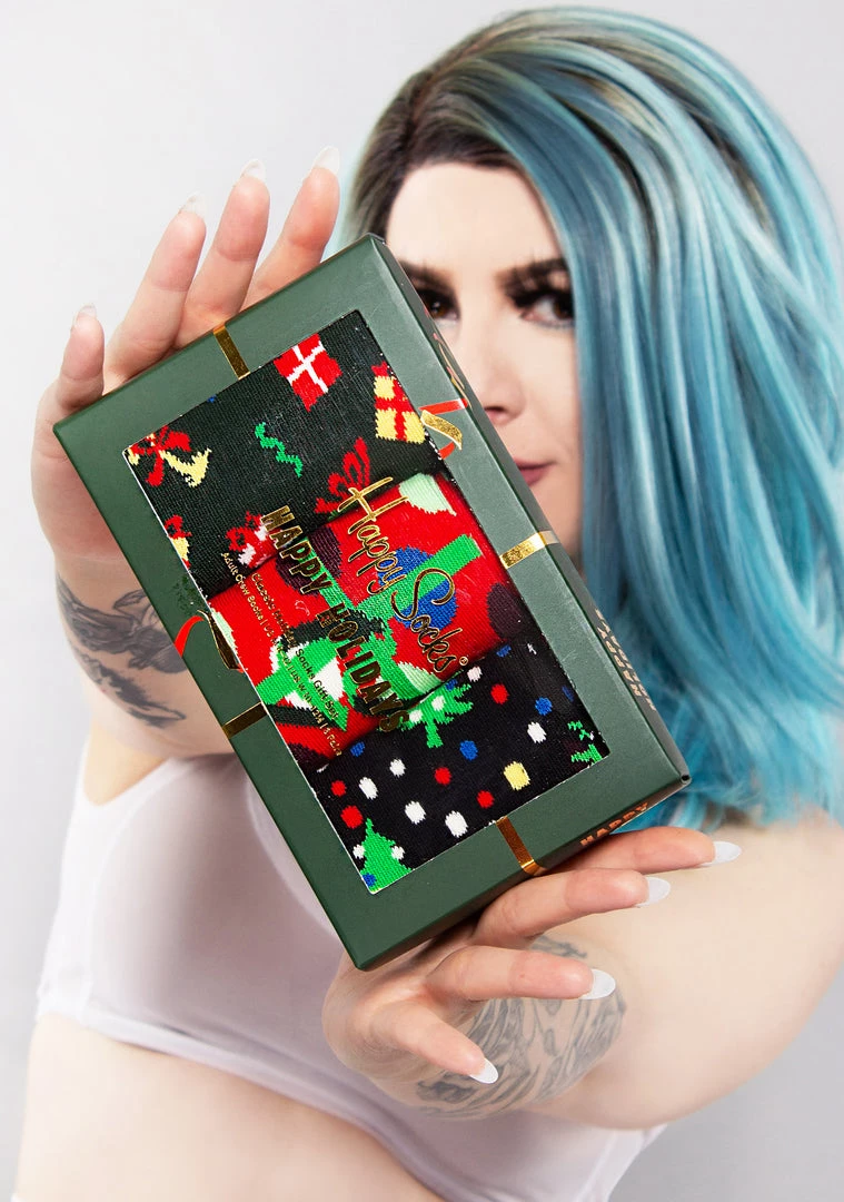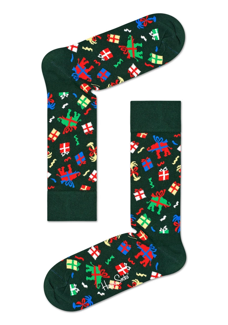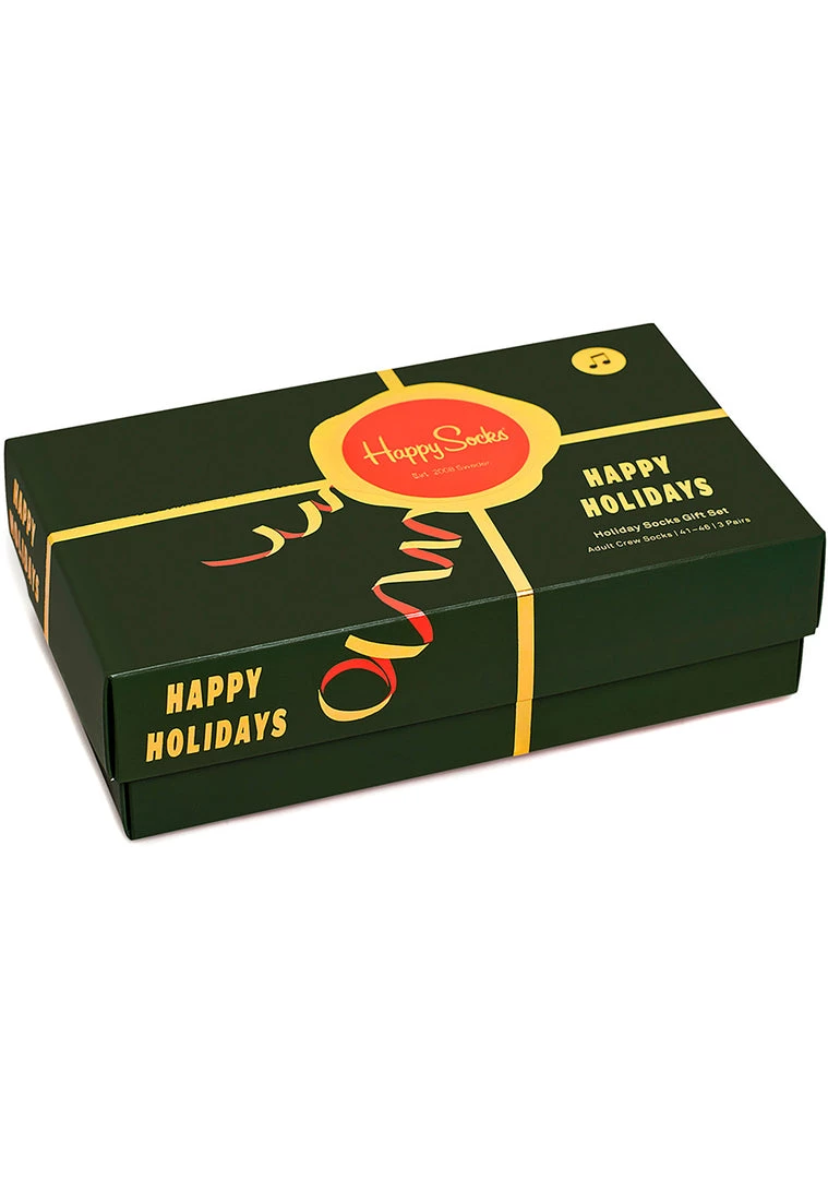 Celebrate this holiday season with comfort with Holiday Socks 3PK Gift Box Set from Happy Sock. This jolly gift set features 3 pairs of super comfy party socks in a variety of holiday colors and prints. This year your feet deserve this gift.
