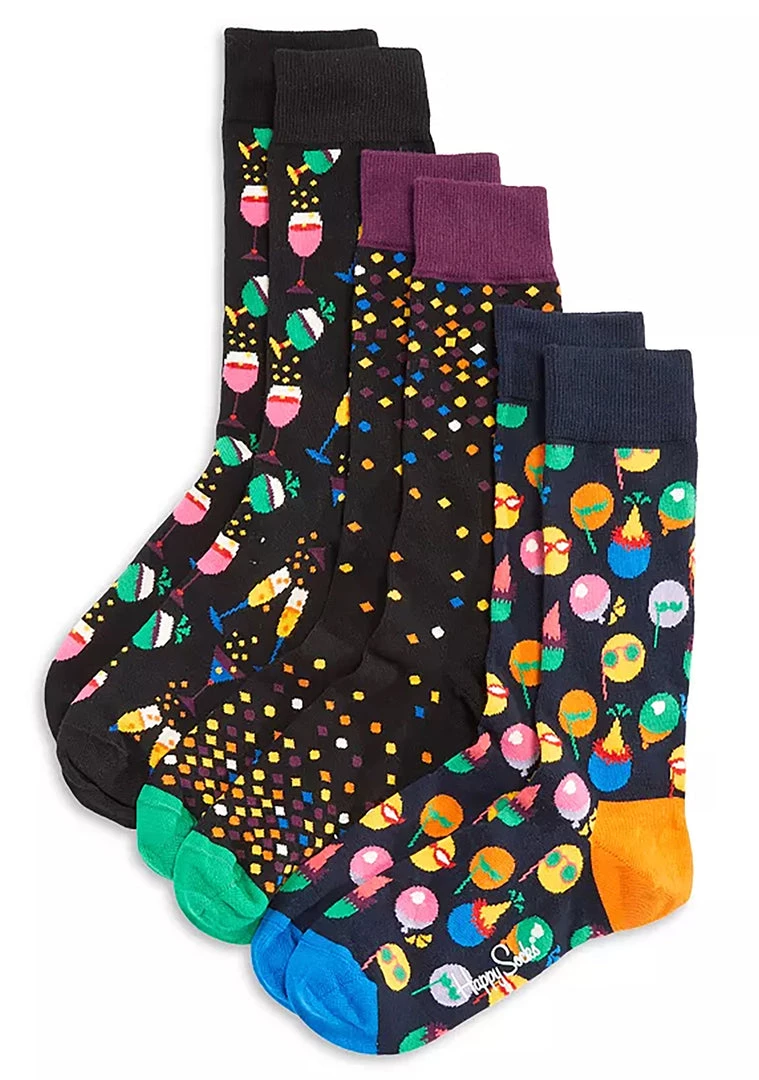Let your feet party in comfort with the Celebration 3PK Gift Box Set from Happy Socks. This fab party sock set features 3 ultra-comfy pairs of socks in a variety of fun celebratory prints. The party donโt start until your feet walk in with these socks!