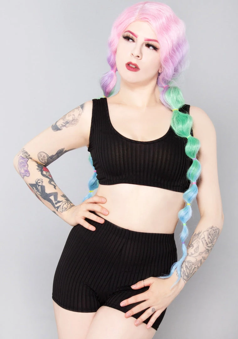 You don’t always have to be extra to make a statement! The Back to Black 2 PC Set from Hot & Delicious speaks for itself! This super sexy set features a solid black ribbed cropped tank top and shorts. With this cute set, they won’t be able to take their eyes off you!