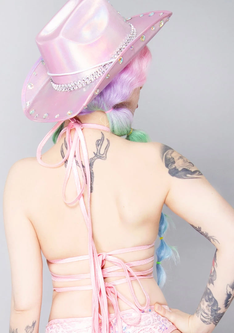 Get them falling for you while dancing in these romantic Love Story Net Wrap Top from J Valentine. These swoon-worthy festival tops feature pink see-thru lace with sequin accent, cross wrap straps with a sexy o-ring detailing, and back tie closure. Go and dance with a stranger and write your special love story with them.
