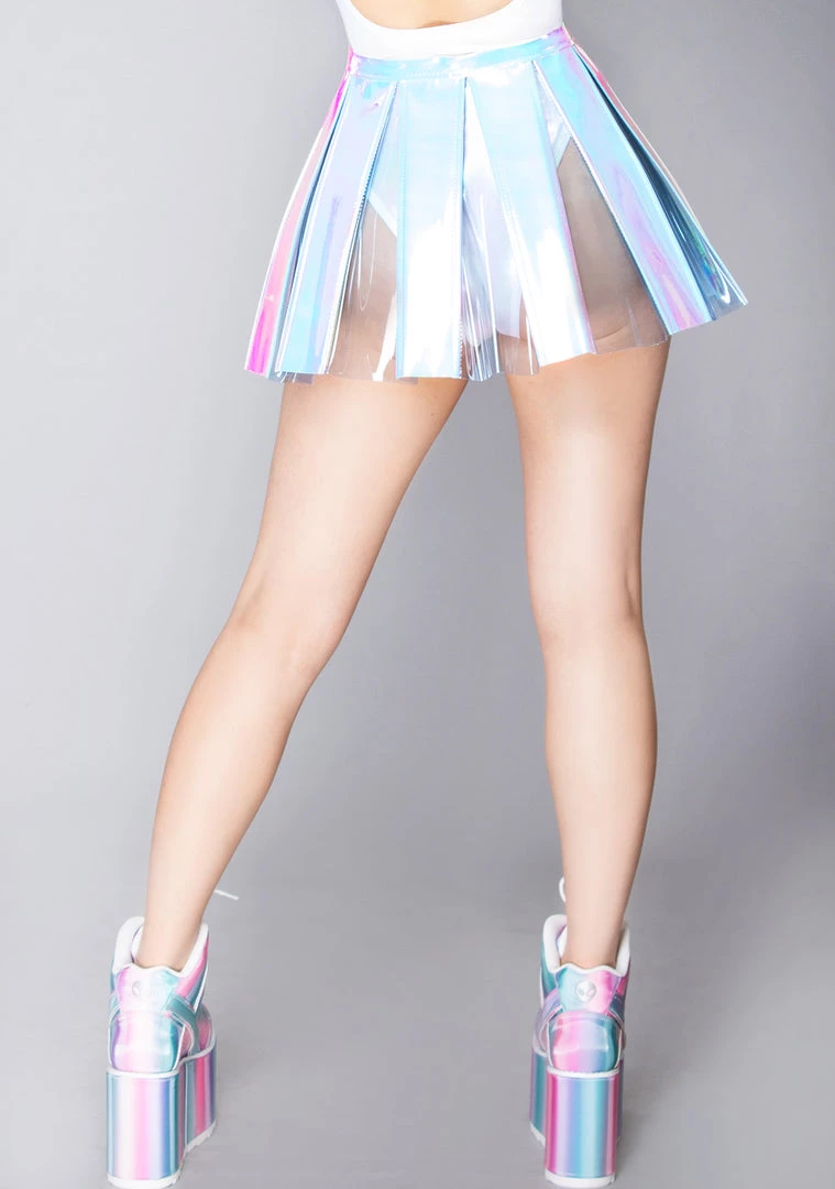 Lose yourself in the music with the Lost Dreams Pleated Vinyl Skirt from J Valentine. These fabulous rave bottoms feature an iridescent blue pleated vinyl skirt with zipper closure. Who would want to be found when the music is this good?