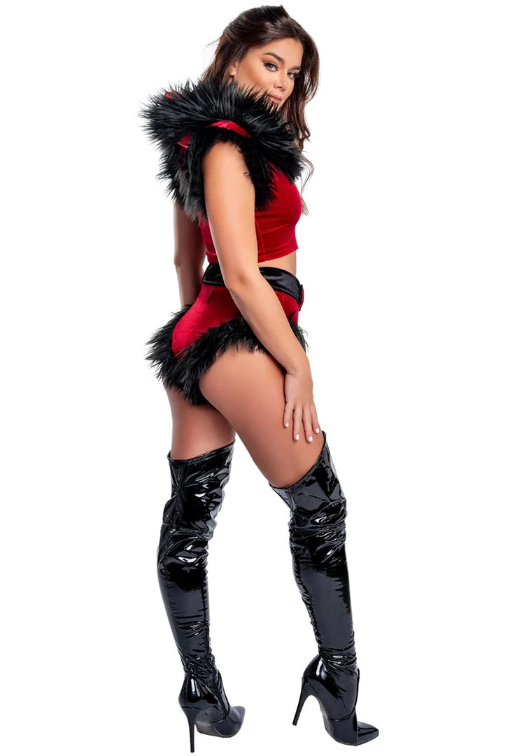 Let them know that naughty is the new nice in the Naughty List High Waisted Short by J Valentine! This festive rave bottom features a red stretch velvet, black faux fur trim, adjustable belt, and zipper closure on the back. Pair these with the J Valentine Naughty List Hooded Crop Top and embrace the baddie that you’ve been all year long!