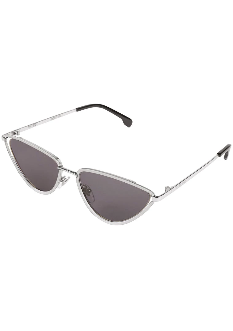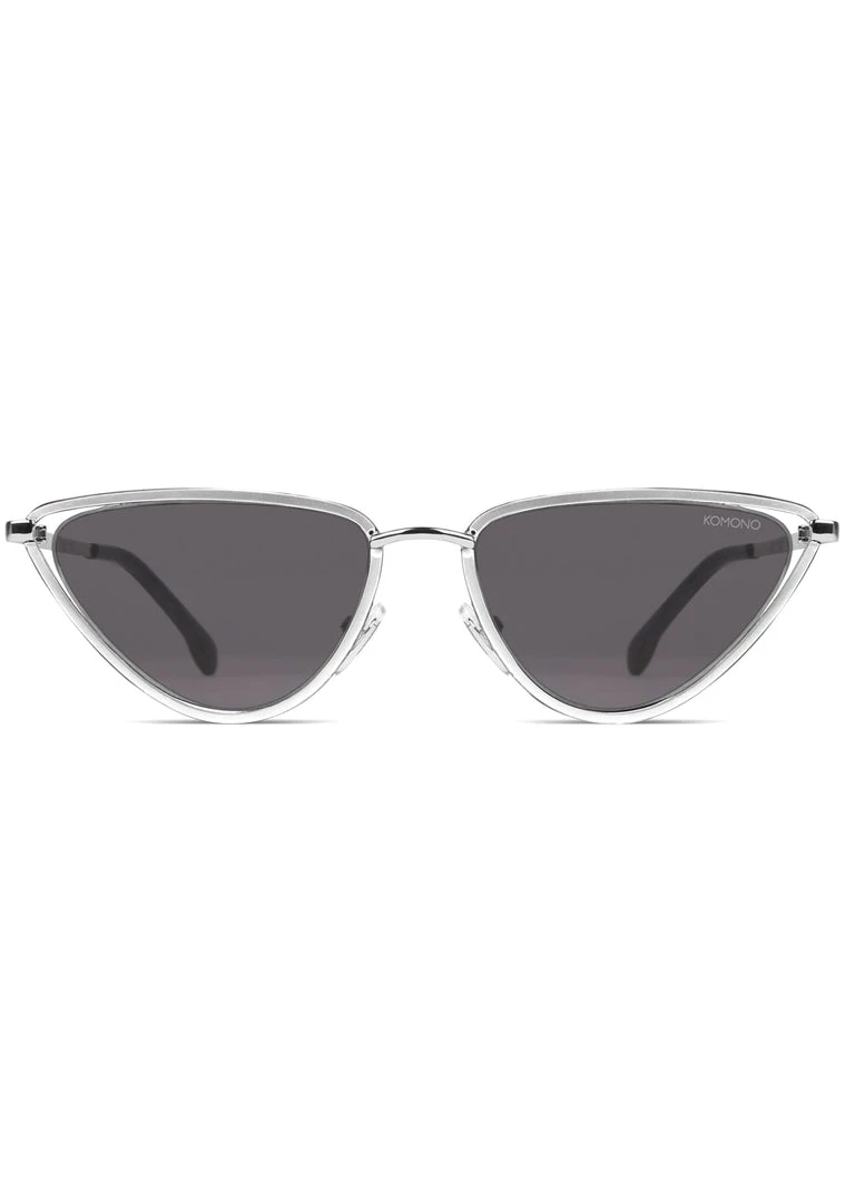 Channel your inner electro kitten with the Gigi Sunglasses in Silver/Smoke by Belgian brand, Komono. Offering a sleek, modern cateye frame with unique floating lenses. CR39 lightweight, scratch-resistant polycarbonate lenses and UV400 protection. Metal silver temples, moldable tips, rubberized screws, custom silicone nose pads. Cleaning cloth and hard case included. Made to glam up any outfit and keep you lookin’ fierce. Rawr.