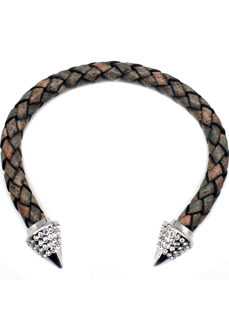 Take any outfit to the next level when you wear this fierce Anaconda bangle from 7 LUXE. This braided PU leather festival bracelets has faux diamond spike detailing that will really give you an edge over the rest. Be sure to grab one in every color!