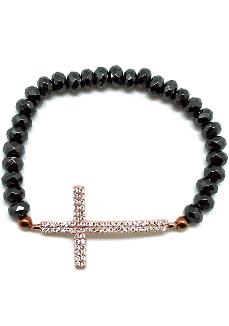 Say your prayers with this beautiful Crystal Cross Beaded Bracelet by LASR. This Punk Bracelets features 18k yellow gold plated cross embedded with Swarovski crystals and polished fire beaded stones.