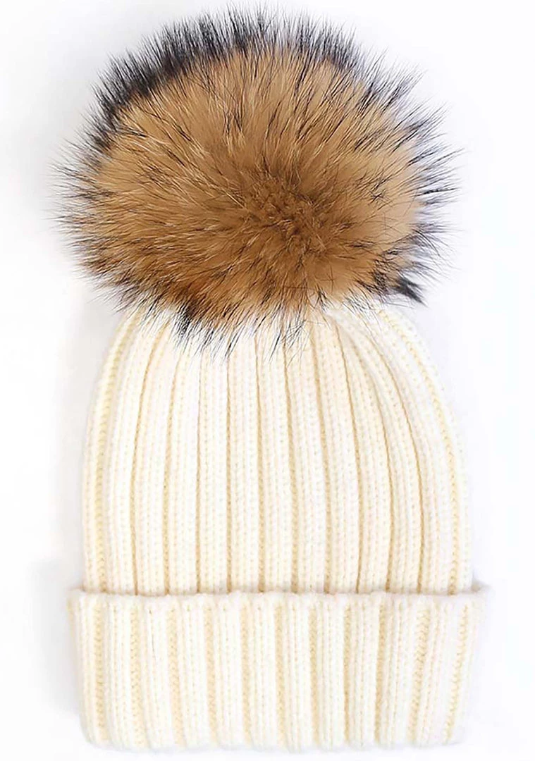 Get the perfect holiday look when wearing this super cute Pom Knit Beanie Festival Hats by LASR. This adorable beanie features ivory colored acrylic knit details with cute faux fur pom ball accent.