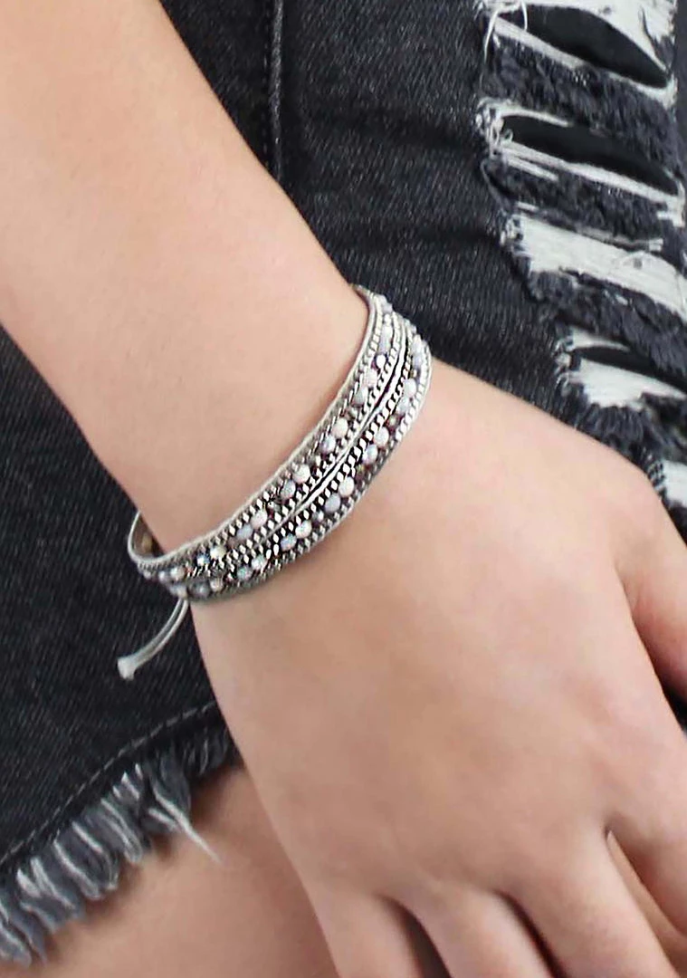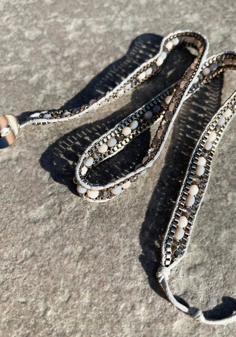 Take and festival look to the next level with this beautiful Stratus Beaded Double Wrap bracelet byLASR. This stunning beaded Wrap Around Bracelet is made with a blend of high quality threads, cotton cord, synthetic beads and secure loop closure. This bracelet is long enough for you to wrap around your wrist up to two times creating a cuff like look.
