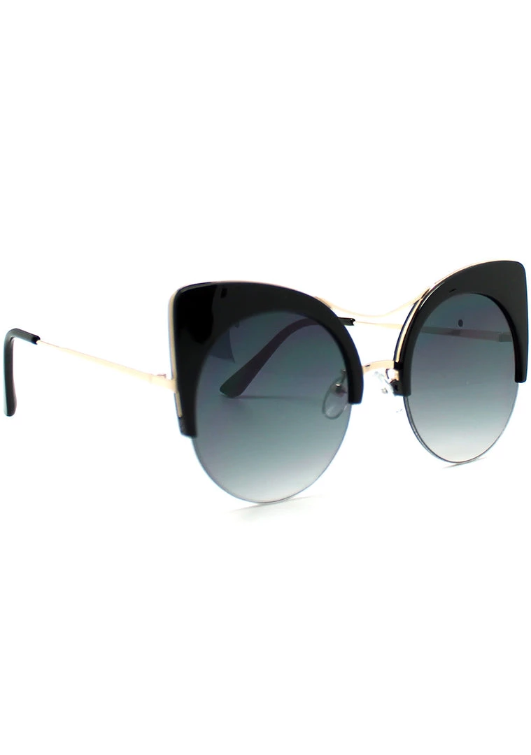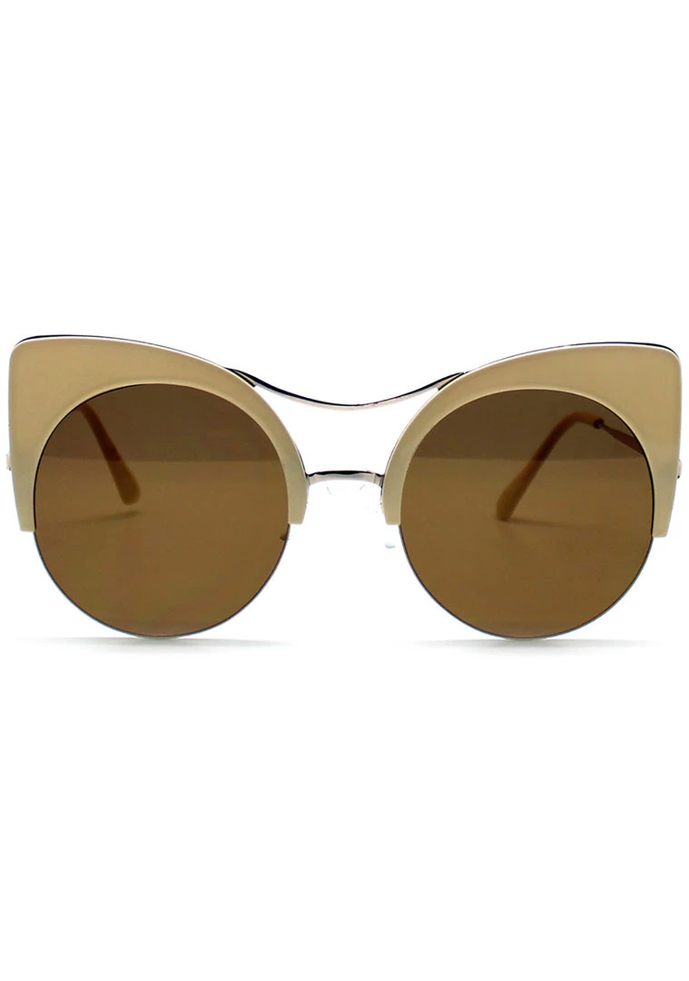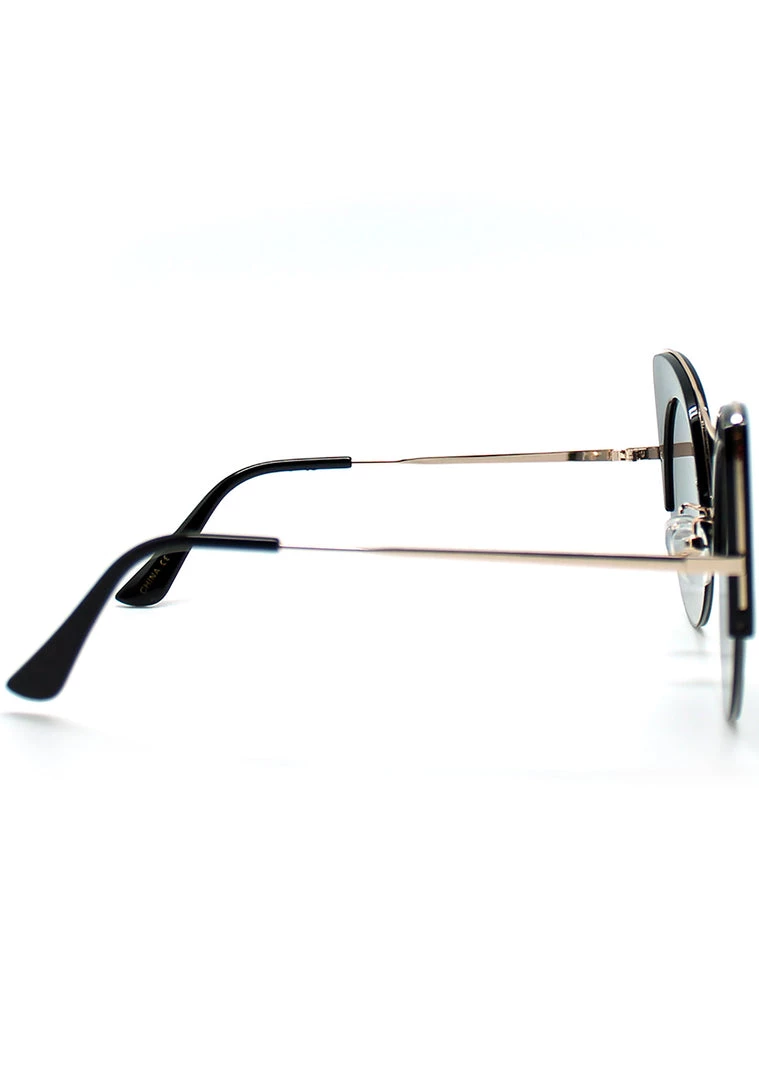 Rule the kingdom with fierceness in the LASR Atomic Pounce Mirrored Sunglasses. These bold cat eye festival glasses feature a thick polycarbonate cat eye upper frame, rimless bottom detail, metal dual bridge accent, metal temples with polycarbonate tips, comfy nose pads, and mirrored colored flat lens. ‘Cuz you’re a wild babe that can’t be tamed.