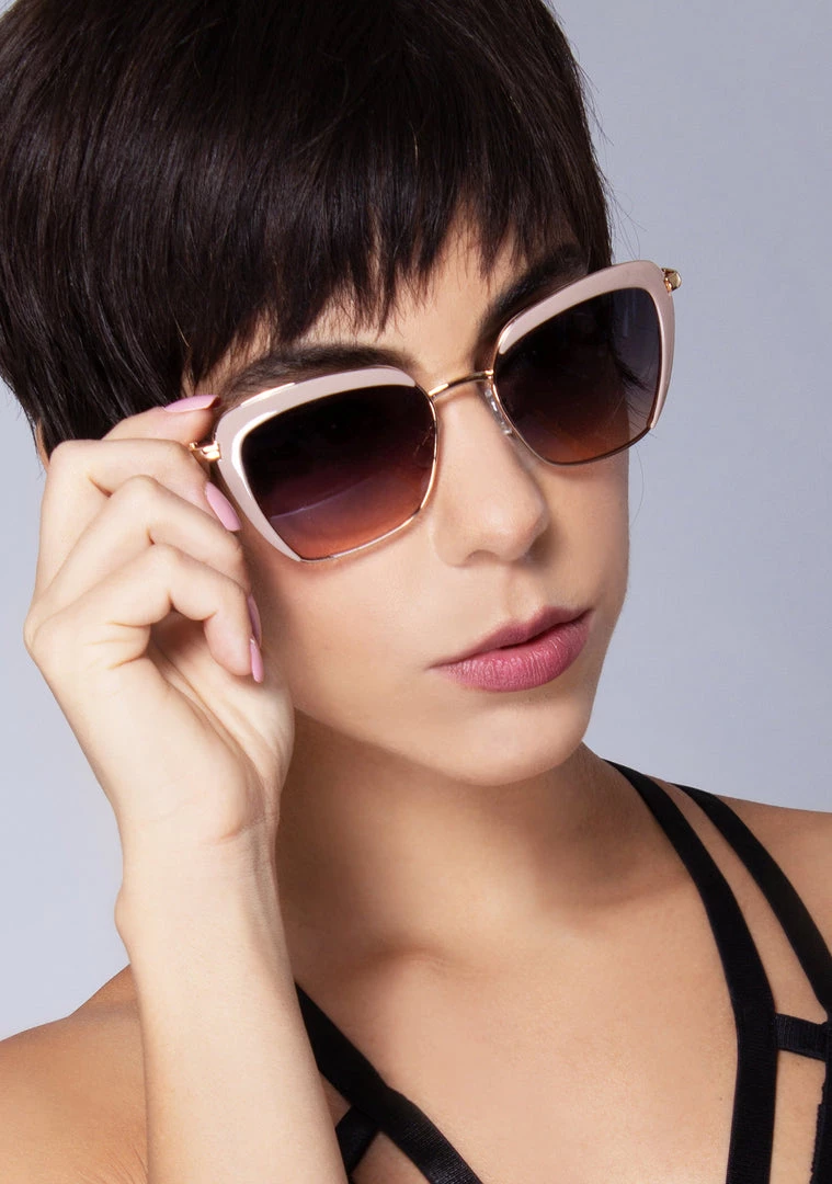 Keep ‘em guessing with the LASR Beautiful Stranger Sunglasses. These sultry festival sunglasses feature a chic cat-eye shape, gold metal frame, enamel outline detailing, comfy nose pads, and gradient colored lens. You’re one mysterious babe in these seductive shades.