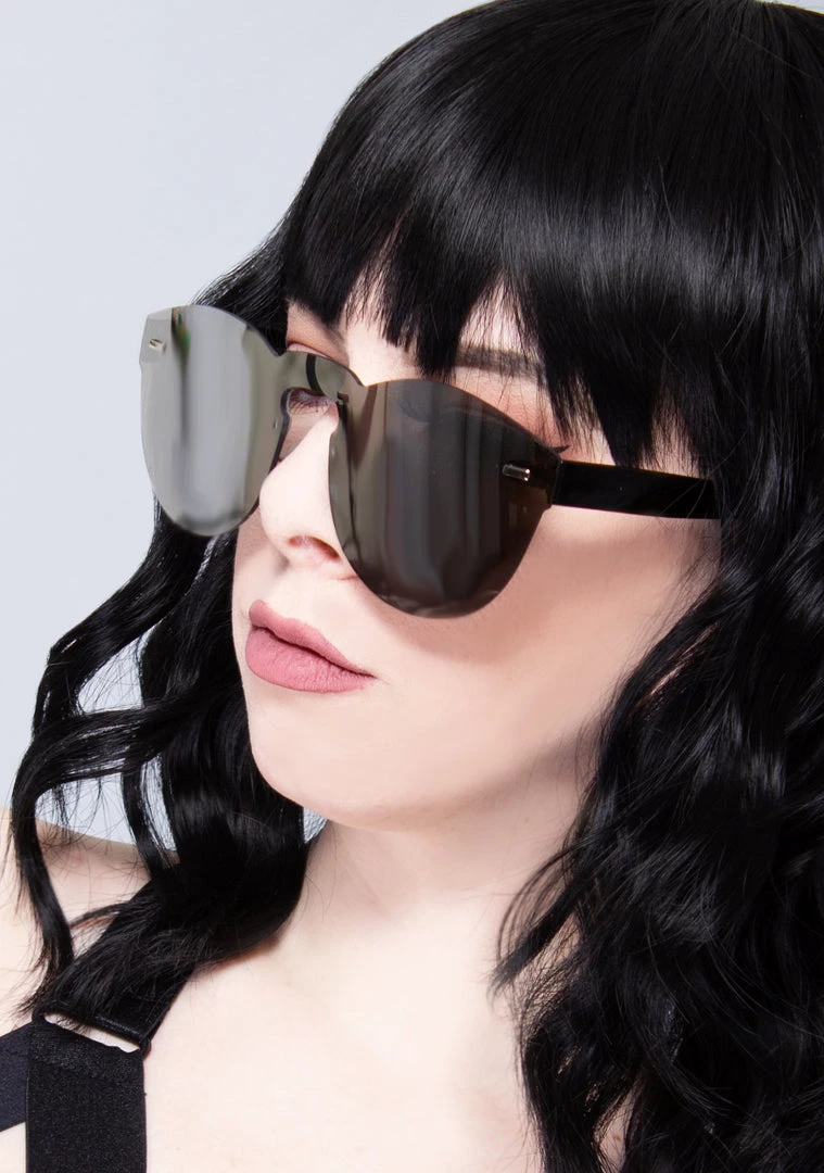 You’re out of this world in the LASR Gimmie Space Reflective Sunglasses. These extraterrestrial shield sunnies feature a rimless frame, comfy nose pads, and an iconic silver mirrored colored lens. These stunning shades will take your festival looks to a whole new level.
