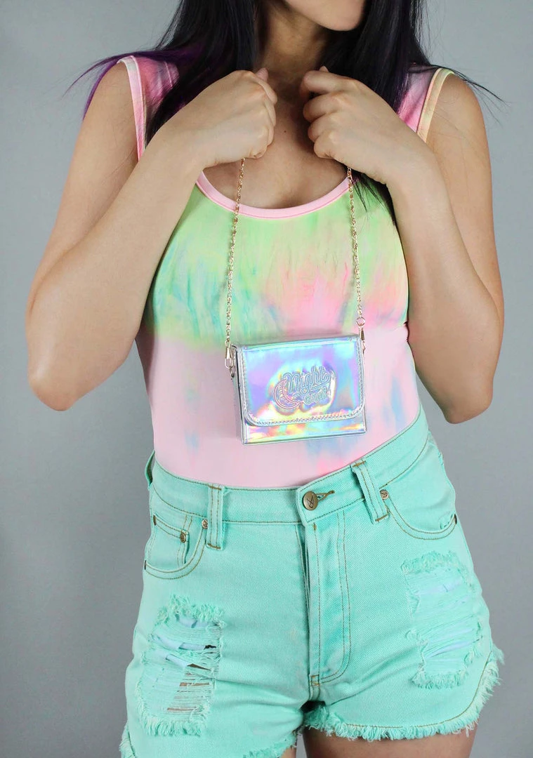 Sometimes we just need to keep it simple. Hit the town wearing the Night Out Crossbody Bag from 7 LUXE. This super cute crossbody bags features a holographic silver PU leather mini box purse with removable gold toned chain-link shoulder strap, and secure magnetic flap closure.