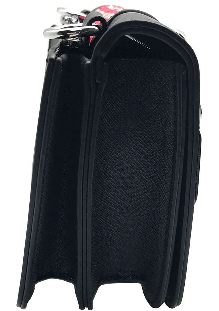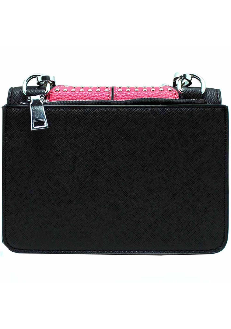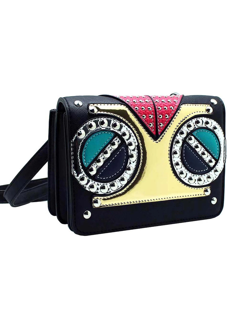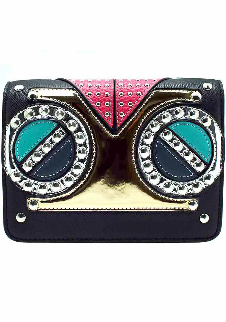 Your fashion senses will be wide awake with this super cute studded crossbody bags fromLASR. This crossbody bags features red, blue, and green owl features stitched onto a PU leather base, a removable black PU leather strap, fully lined interior with two pockets on either side, a back pocket with zipper closer, and magnetic front closure.