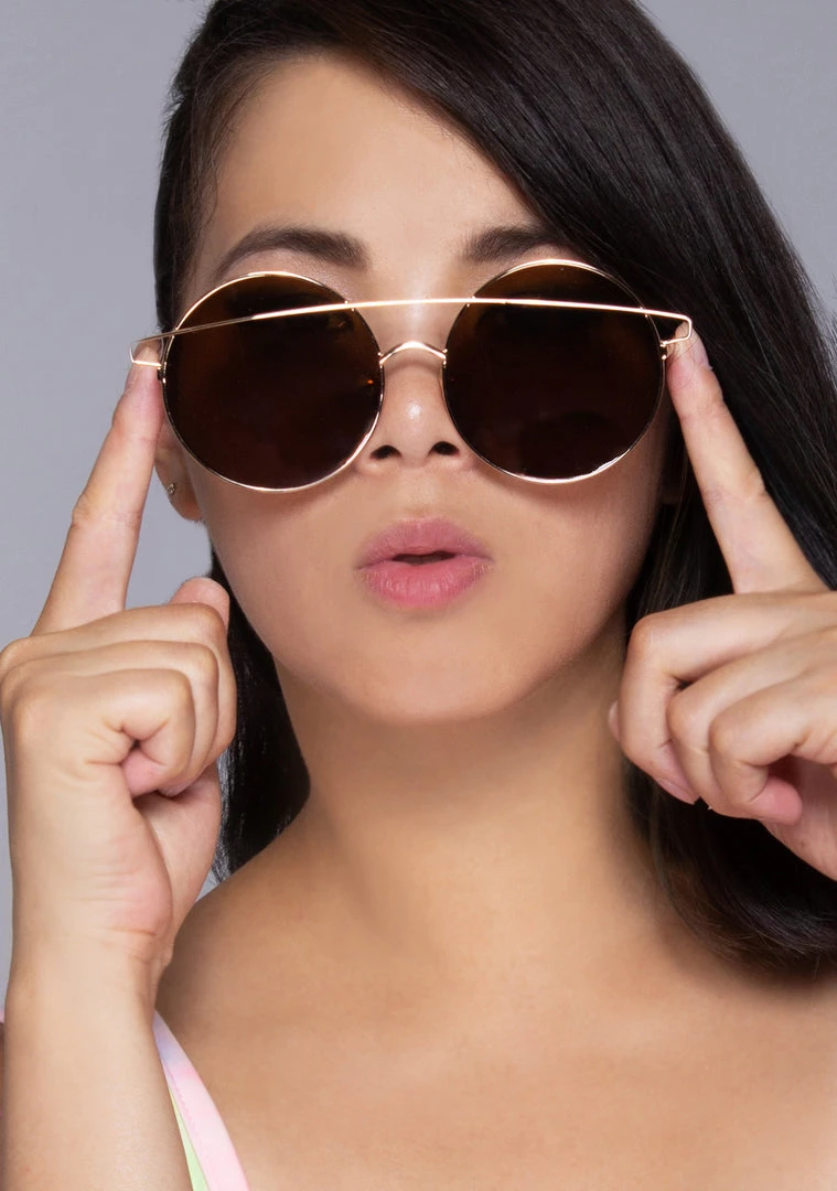 Block out haters & rays with the LASR Total Eclipse Sunglasses. These dope ass party ready festival sunglasses feature an ultra-thin oversized round metal frame with unique upper crossbar detailing, comfy nose pads, and solid colored lenses. These sleek sunnies will stunt on ‘em, shade or shine.