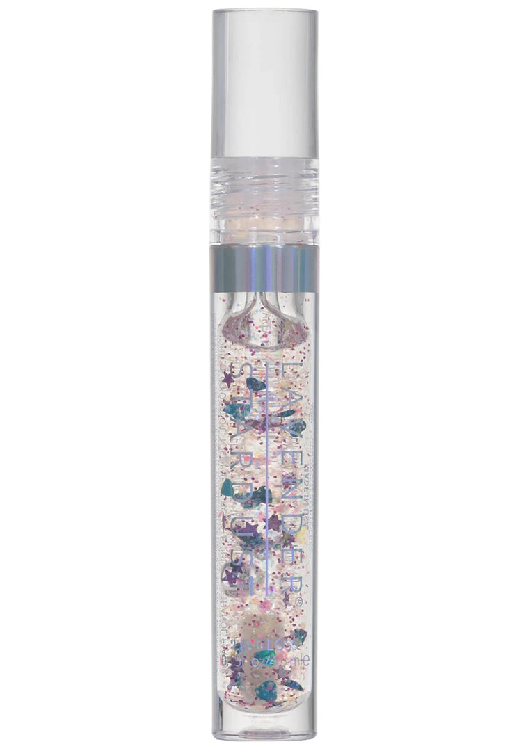 - Clear gloss with butterfly-shaped confetti and iridescent glitter inside