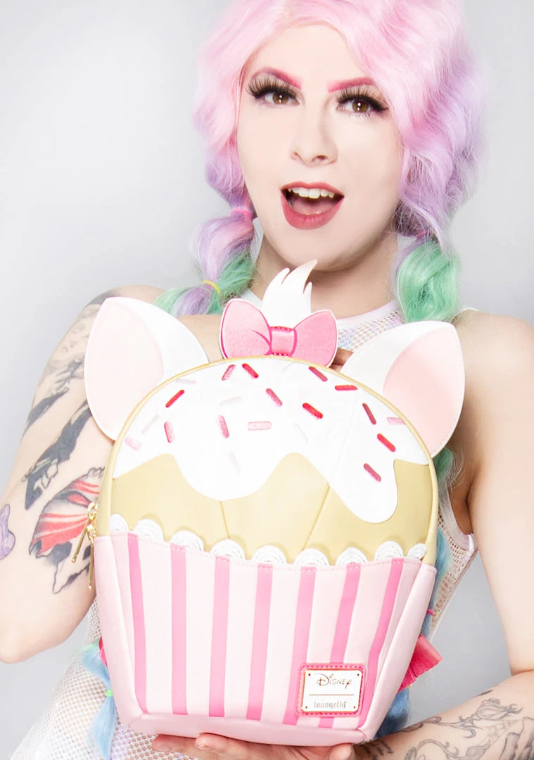 Add a little bit of sweetness to your life with the Disney Marie Sprinkle Cupcake Cosplay Mini Backpack from Loungefly. This deliciously cute festival backpack features a vegan leather outer, zipper closure, and enamel zipper charm, and has applique, embroidered, and printed details. Now out there and give them a toothache.