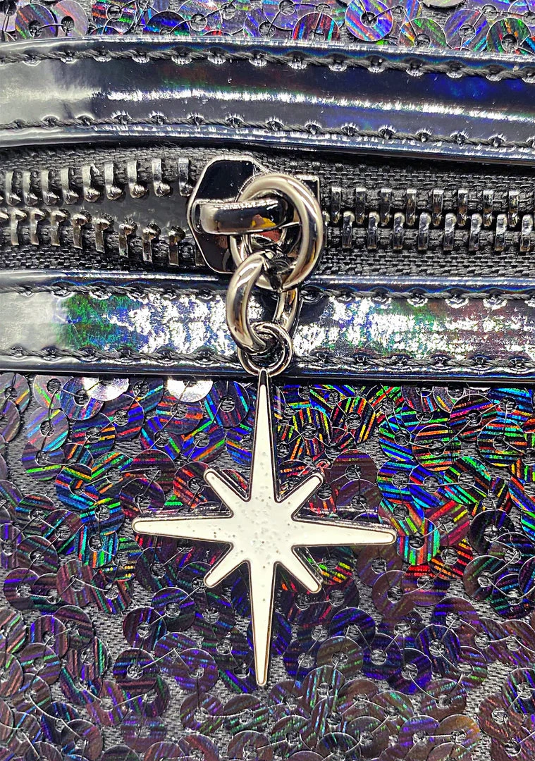 - LASR Exclusive Disney Celestial Dreams Black Holographic Sequin Minnie Mini Backpack