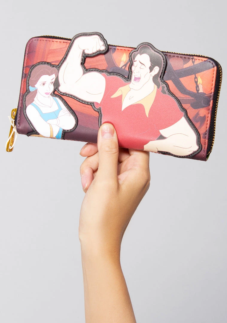 Flex your muscles like Gaston with Disney Beauty and the Beast Gaston Villains Zip Around Wallet from Loungefly. These buff cute wallets feature Gaston and Bell applique on the front panel with LeFou and the bimbettes, Claudette, Laurette, and Paulette, printed on a vegan leather base, with interior card slots, I.D. window, inner coin pocket, gold metal hardware, and zipper closure. With Gaston by your side, you’re sure to win every fight.
