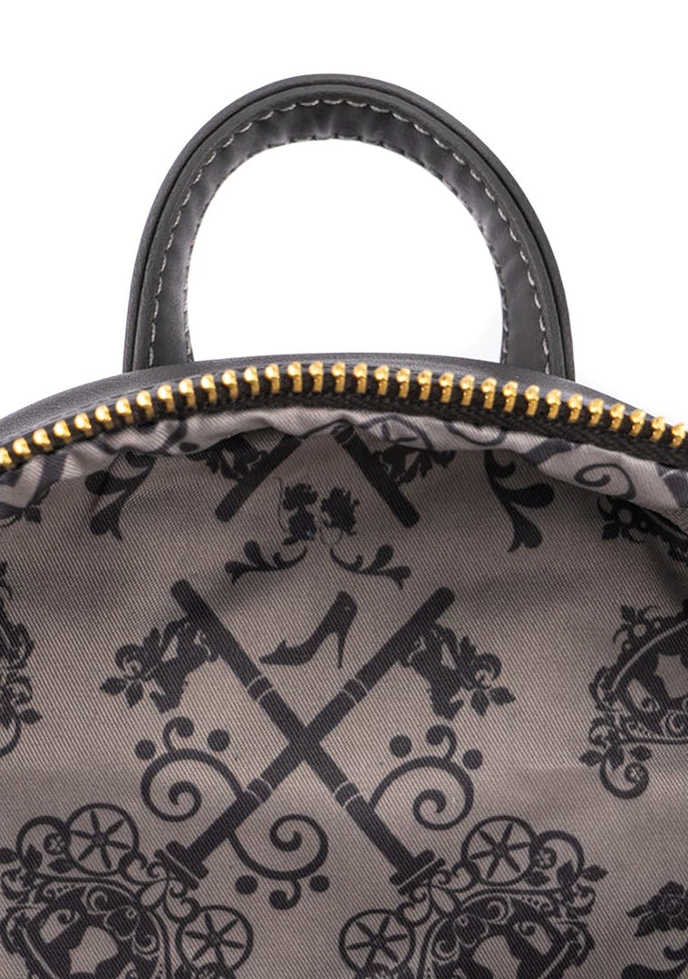 You better have your chores done for the day if you plan on going out with the Disney Villains Scene Evil Stepmother & Stepsisters Villains Scene Mini Backpack from Loungefly. This villainous festival backpack features a vegan leather outer with printed and appliqué details, a front zipper closure pocket, top handle, zip-top closure, and adjustable straps. Now Drizella, Anastasia, come along!
