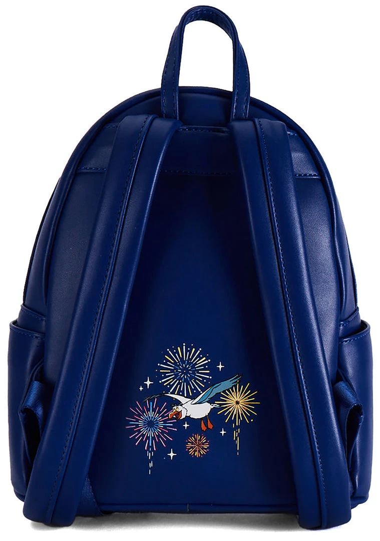 Light up your night with the Disney The Little Mermaid Ariel Fireworks Glow and Light Up Mini Backpack from Loungefly. These illuminating festival backpacks feature Ariel, Flounder, and Sebastian on a vegan leather base, with an exterior front zippered pocket, top handle, zip-top closure, and dual padded adjustable straps.