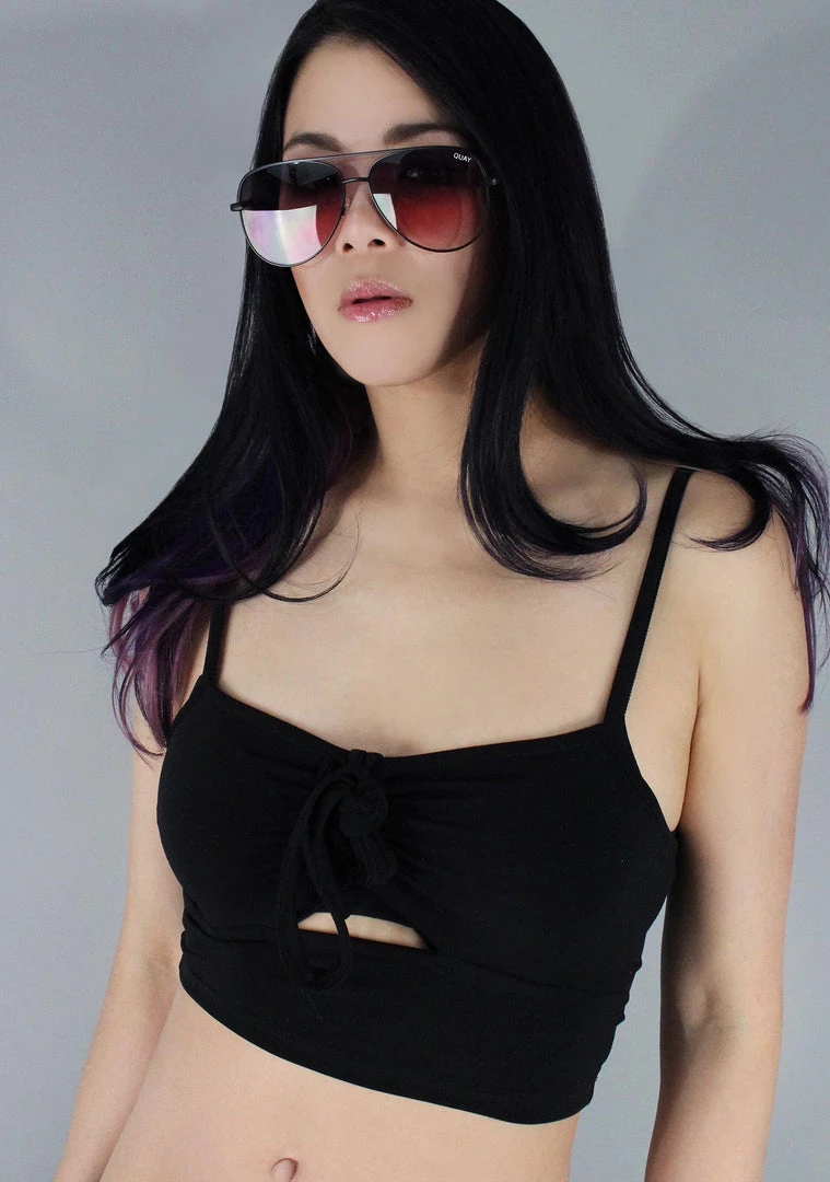 Step up your summer style with the Chateau Crop Top from Motel Rocks. This super cute festival tops features a soft and stretchy cotton fabric in black with drawstring neckline, cut-out detail, and spaghetti straps.
